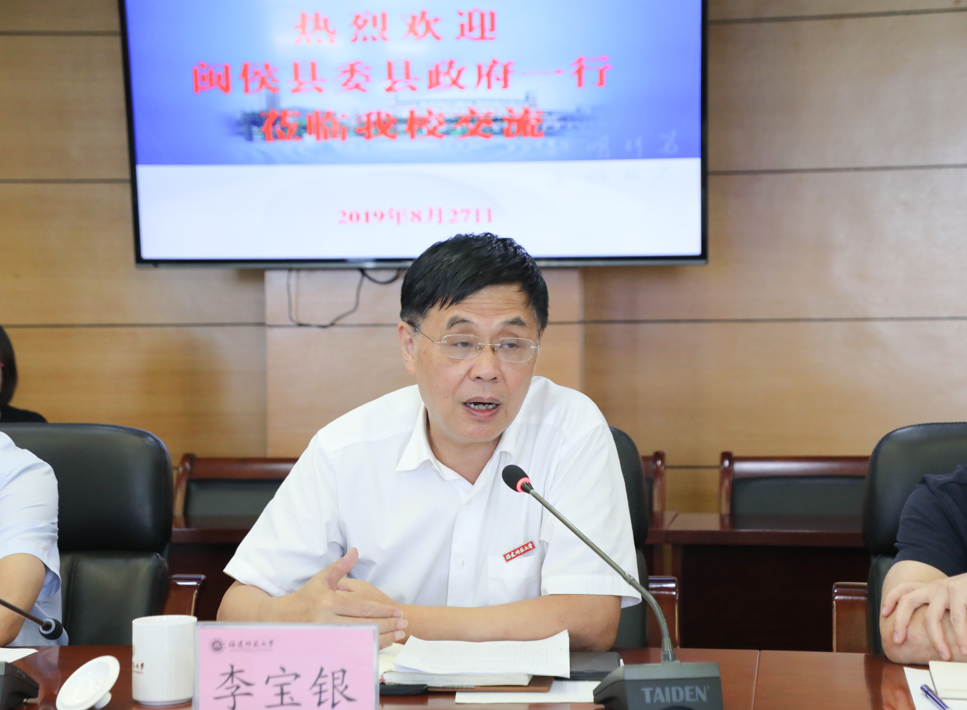 李宝银书记代表学校,对闽侯县党政领导一行的到来表示热烈的欢迎,对闽侯县长期以来支持学校事业发展、帮助学校破解难题的做法表示衷心的感谢。他说,支持闽侯县办好基础教育,支持闽侯县建设和发展,学校责无旁贷。希望双方进一步加强联系,建立健全信息沟通与协调推进机制,积极探索校地合作新模式,共同研究解决双方合作和学校发展中的问题,以实实在在的合作项目与合作成效,推动双方事业共同发展。