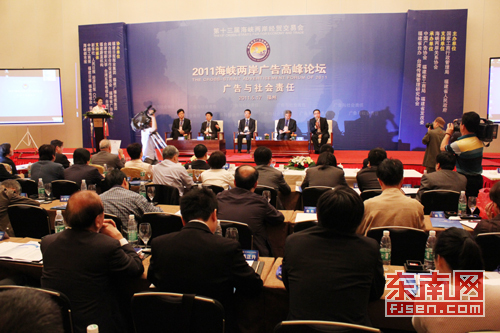 由我校传播学院参与策划的2011海峡两岸广告高峰论坛于5月17日在福州举行。来自海峡两岸的200多名广告界精英齐聚榕城,围绕“广告与社会责任”的主题展开探讨。国家工商总局副局长甘霖、福建省人民政府副省长倪岳峰出席论坛并致辞。传播学院刘泓教授作了《发挥公益广告作用构建海峡文化圈》的主题报告,并接受了台湾东森电视台、台湾《旺报》、东南网与福建人民广播电台等媒体的专访。
