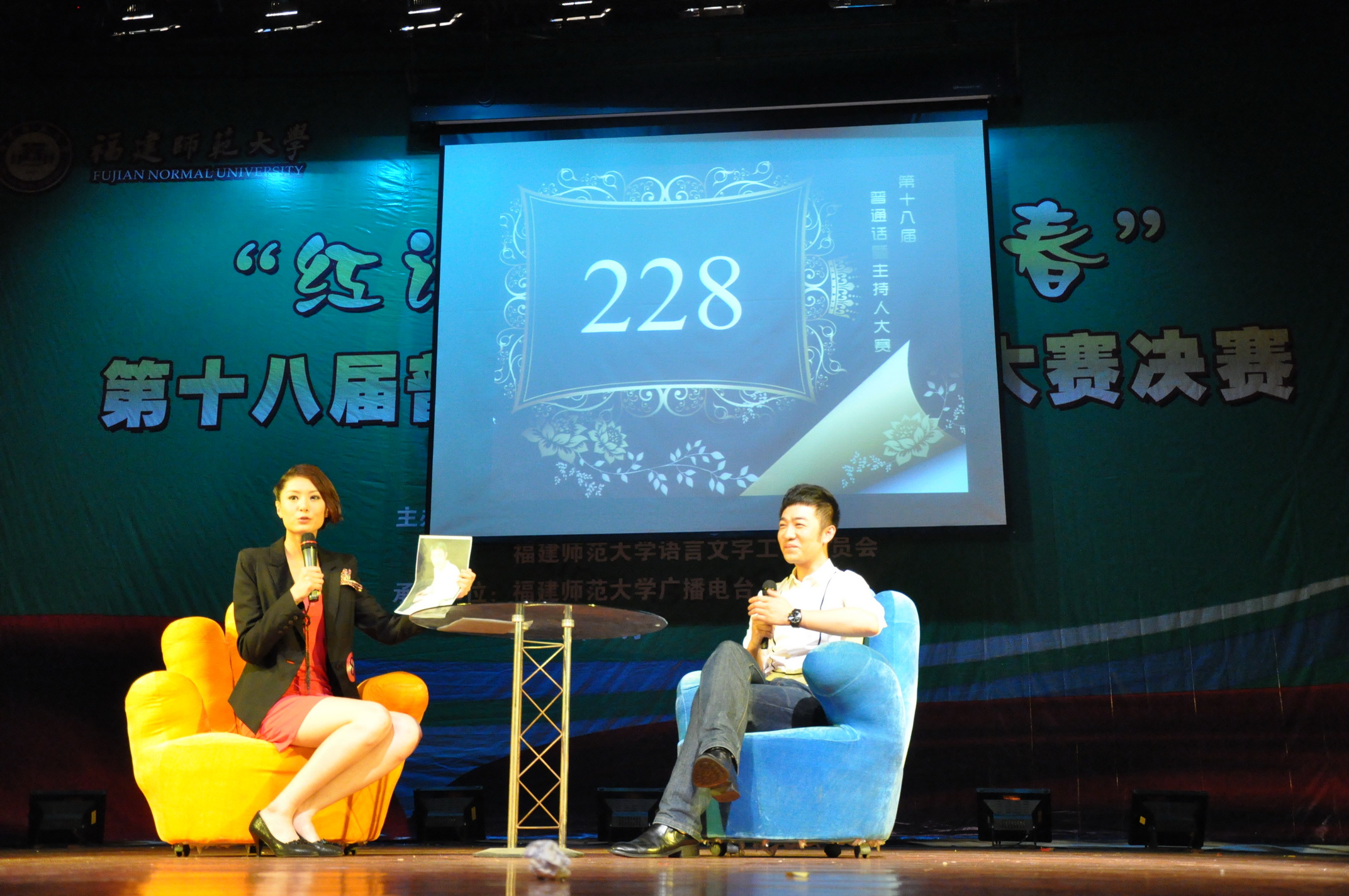 5月20日晚,由校党委宣传部、校语委主办,校广播电台承办的“红话筒•颂青春”第十八届普通话暨主持人大赛在旗山校区大会堂圆满落下帷幕。汪文顶副校长,校党委宣传部(文明办)、校语委办负责人出席并观看了比赛。