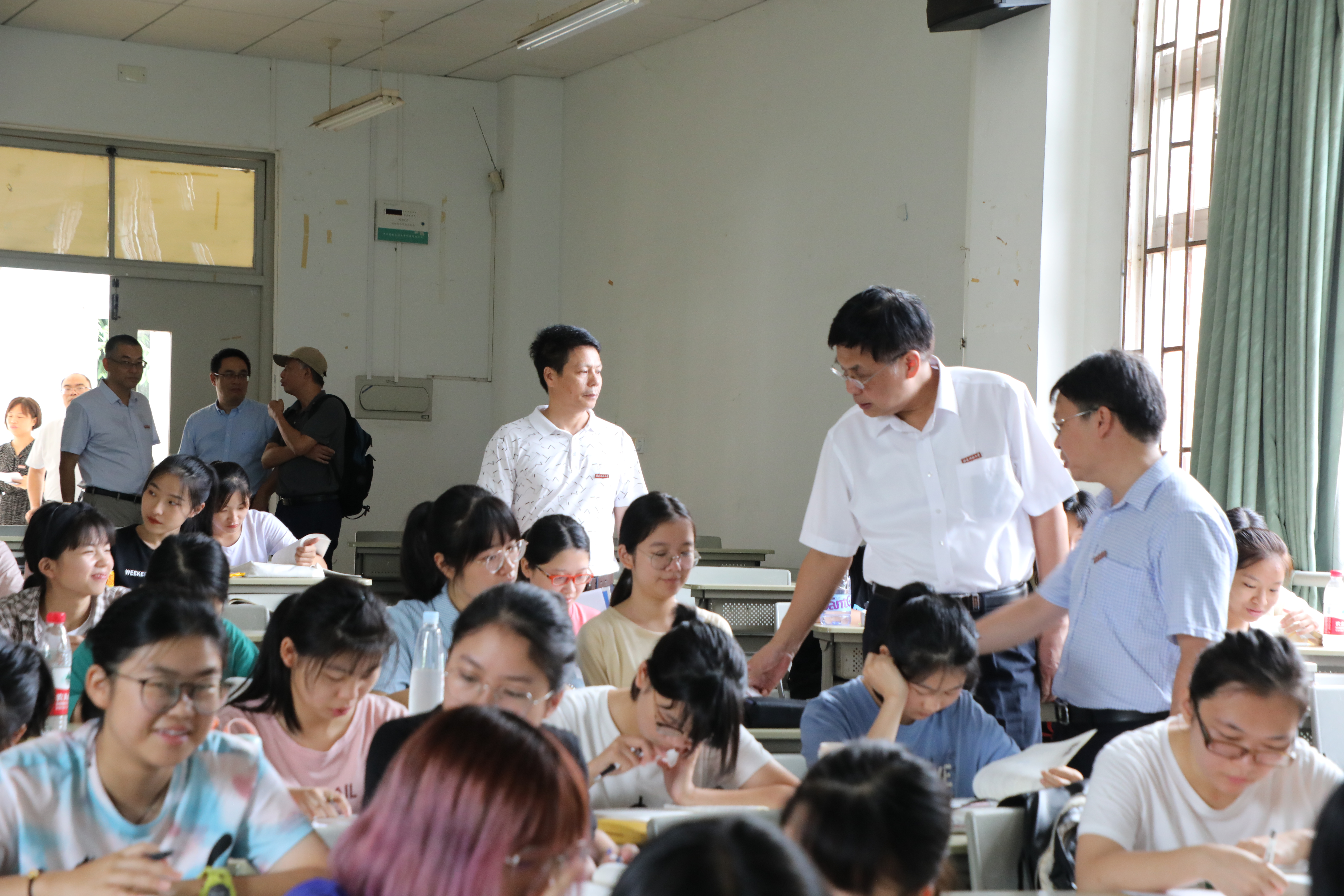 9月2日上午,新学期开学第一天,校领导李宝银、潘玉腾、叶燊、黄清波、郑家建、涂荣分别带领有关部门负责人及工作人员深入旗山校区和仓山校区各教学区教室,实地检查新学期开学第一天的教学工作,具体了解教师课堂教学、学生课堂学习,以及教学资源使用、教学后勤保障等方面情况。从总体情况上看,广大师生都能严格遵守教学纪律,提早进入教室,做好课前准备。上课时,教师备课充分,精力投入,讲授认真;学生认真听讲,精神饱满。教学场所干净整洁,教学设备运行正常,教学后勤保障有力,教学秩序整体良好。