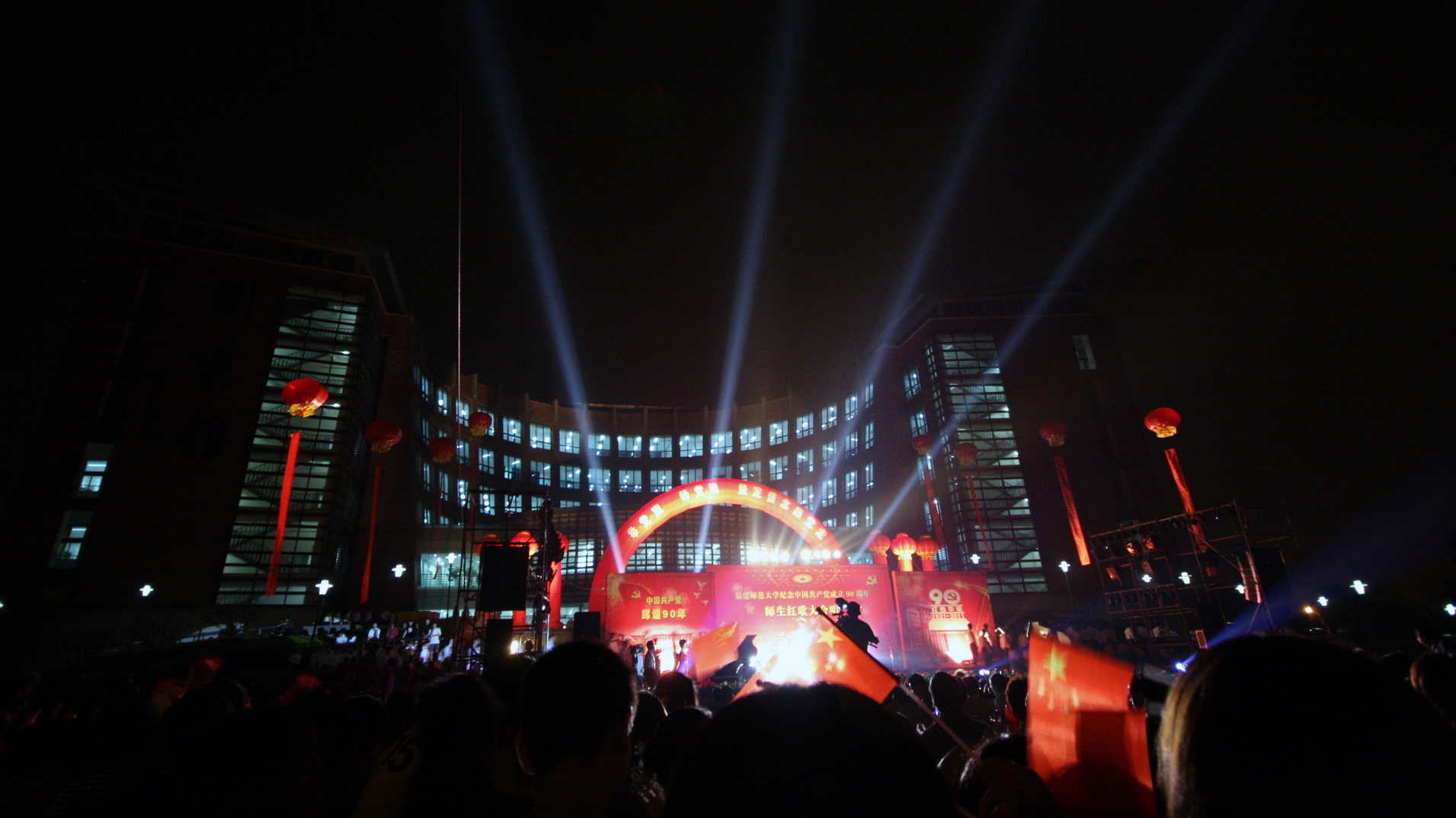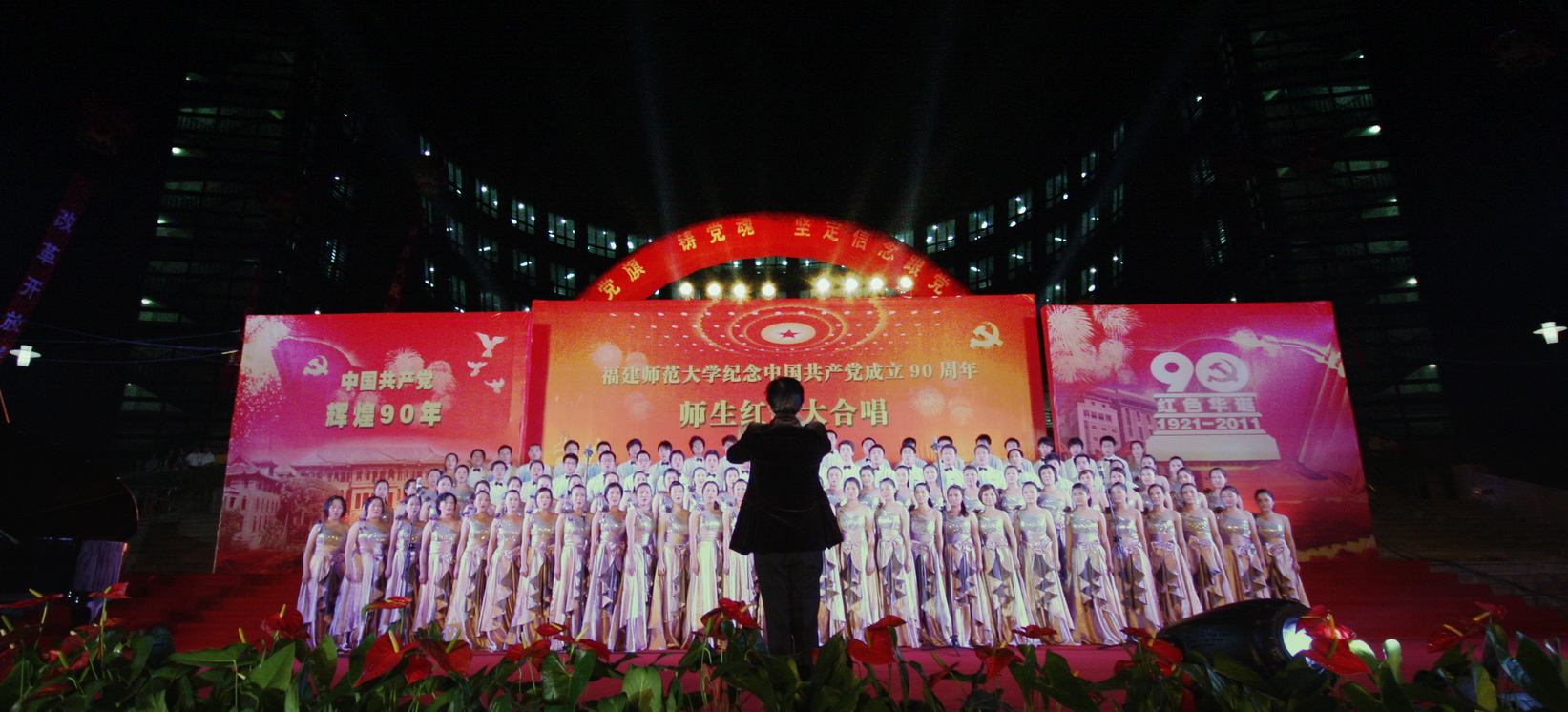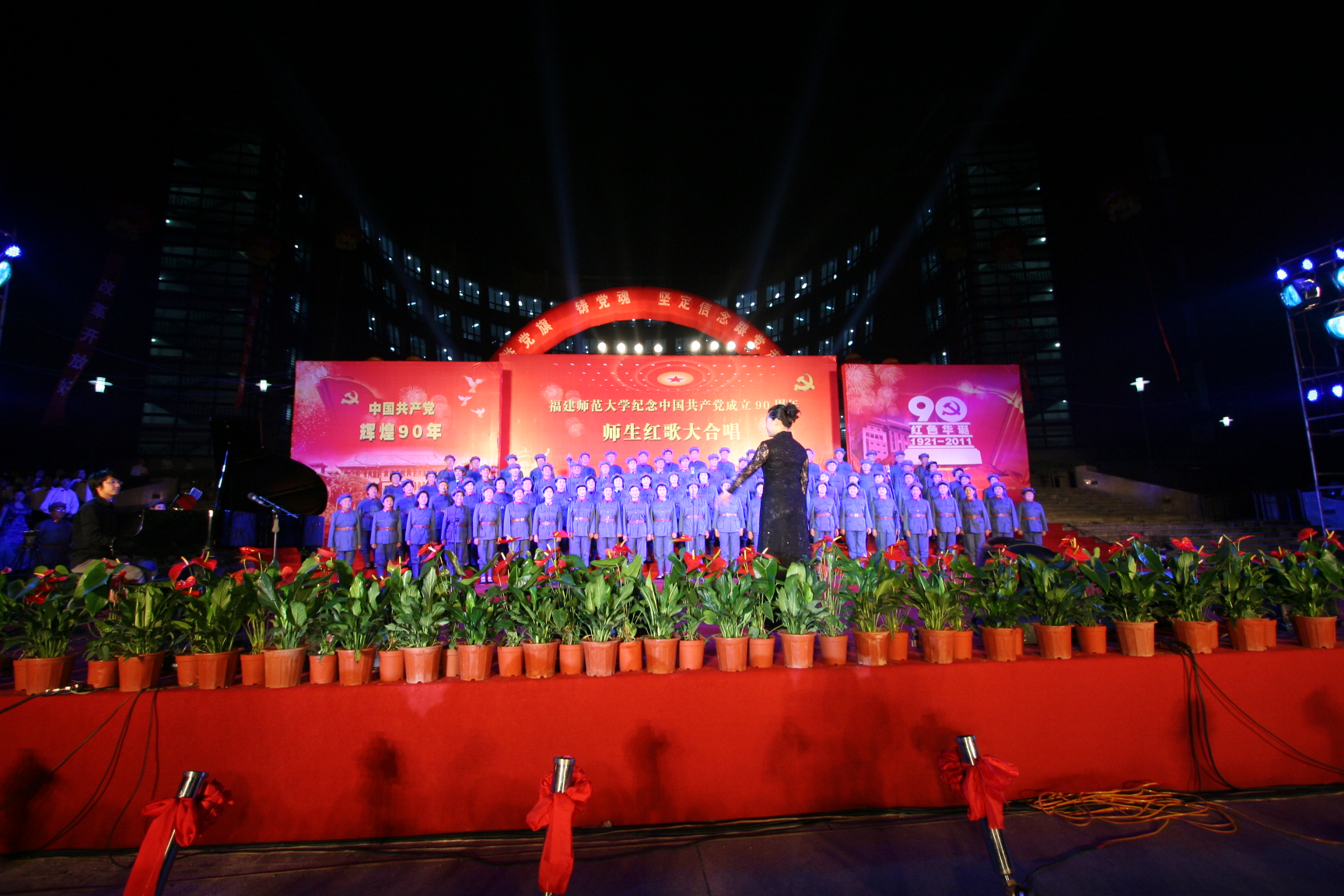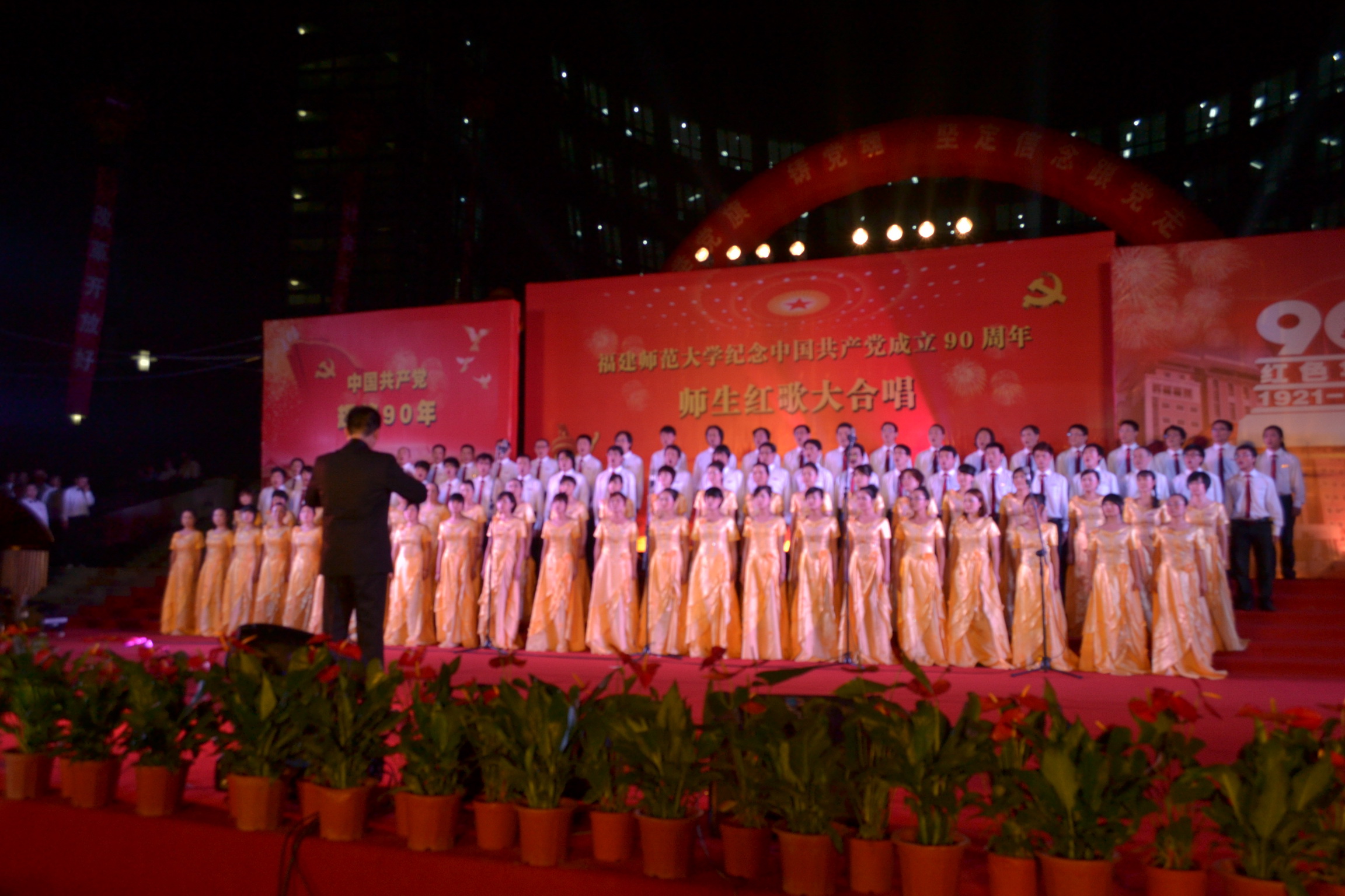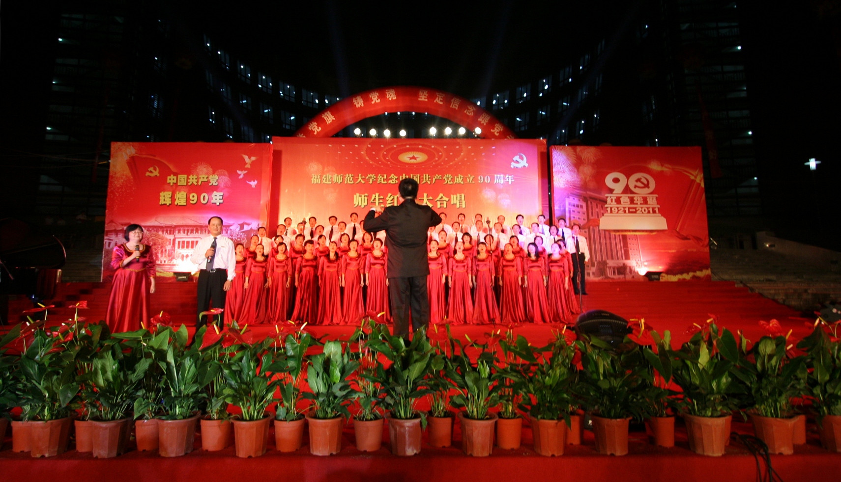 5月25日晚,由校党委宣传部、校工会和校团委共同主办的“举党旗,铸党魂,坚定信念跟党走”星空下载游戏推荐安卓师生纪念中国共产党成立90周年红歌大合唱比赛在旗山校区福万广场隆重举行,共有32支师生合唱团、2600余师生参加比赛和演出。省总工会党组成员、纪检组长高榕,团省委副书记兰明尚,省教科文卫体工会副主任张红璇,福州市总工会直属工会主席侯贞诚、副主席尤山,校领导罗萤、许歌平、汪文顶、李敏、凌启淡,以及全校师生代表共6000多人观看了比赛。