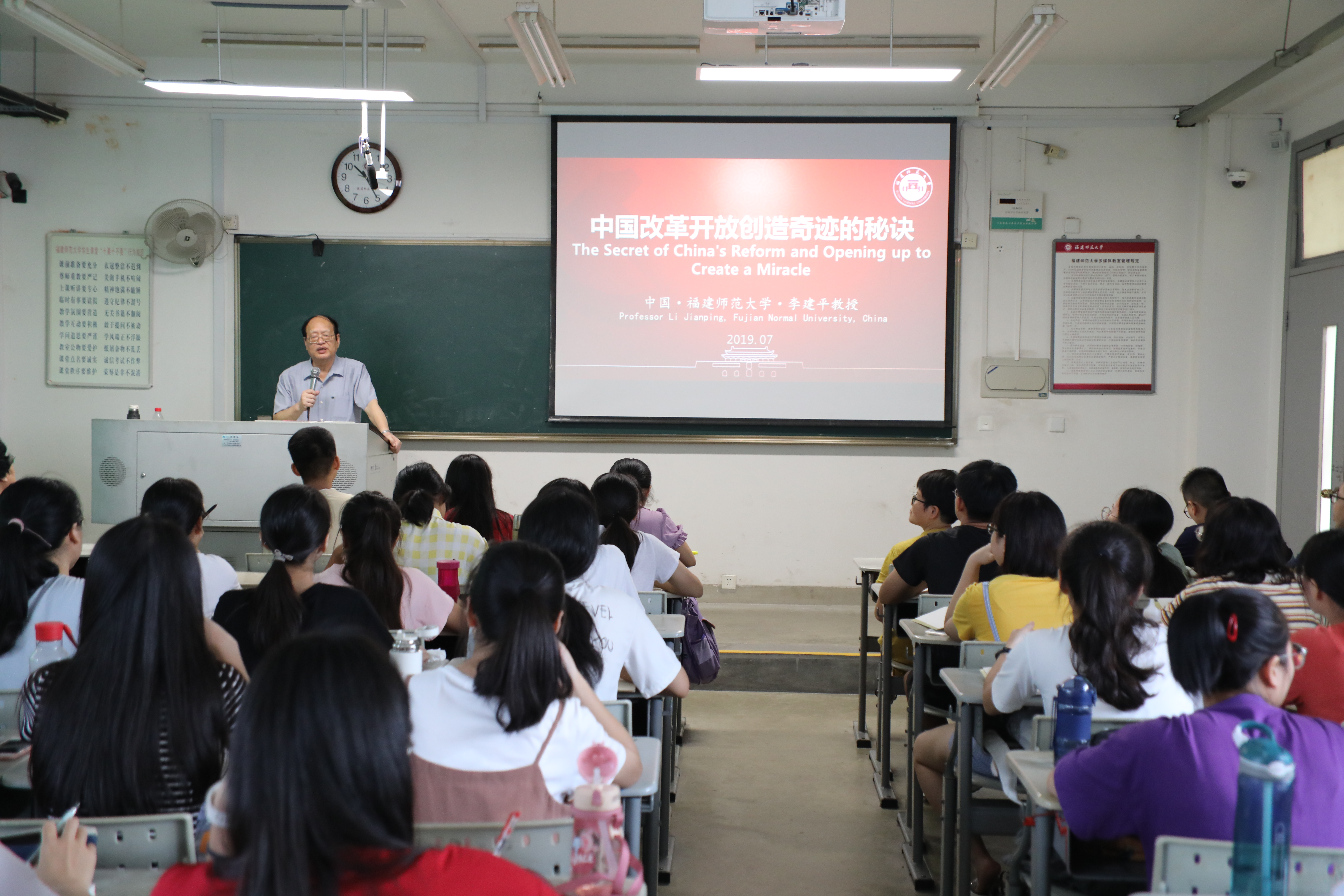 9月3日,中央“马工程”首席专家、我校原校长李建平教授以“中国改革开放创造奇迹的秘诀”为主题,为新开设的《习近平新时代中国特色社会主义思想概论》带来首讲。李教授认为,中国的改革开放使人民生活大变样、综合国力大发展、社会主义换新天,使古老而又年轻的中国走向充满无限希望和生机的新天地。中国改革开放创造奇迹的秘诀就在于坚持正确的方法论,即坚持辩证唯物论的一切从客观实际出发、实事求是,坚持唯物辩证法的矛盾分析和系统分析方法,坚持按照马克思主义实践认识论办事,以及坚持历史唯物主义这一中国共产党人的历史观和价值观。他说,习近平新时代中国特色社会主义思想是新时代中国共产党人的思想旗帜,是国家政治生活和社会生活的根本指针,是当代中国马克思主义、二十一世纪马克思主义。习近平总书记关于全面深化改革的重要论述,系统阐述了新时代全面深化改革的重大意义、正确方向、科学方法和实践要求,为将改革进行到底提供了强大的理论武器,是我们党必须长期坚持的指导思想。课堂上,李教授还和同学们进行多次互动交流。