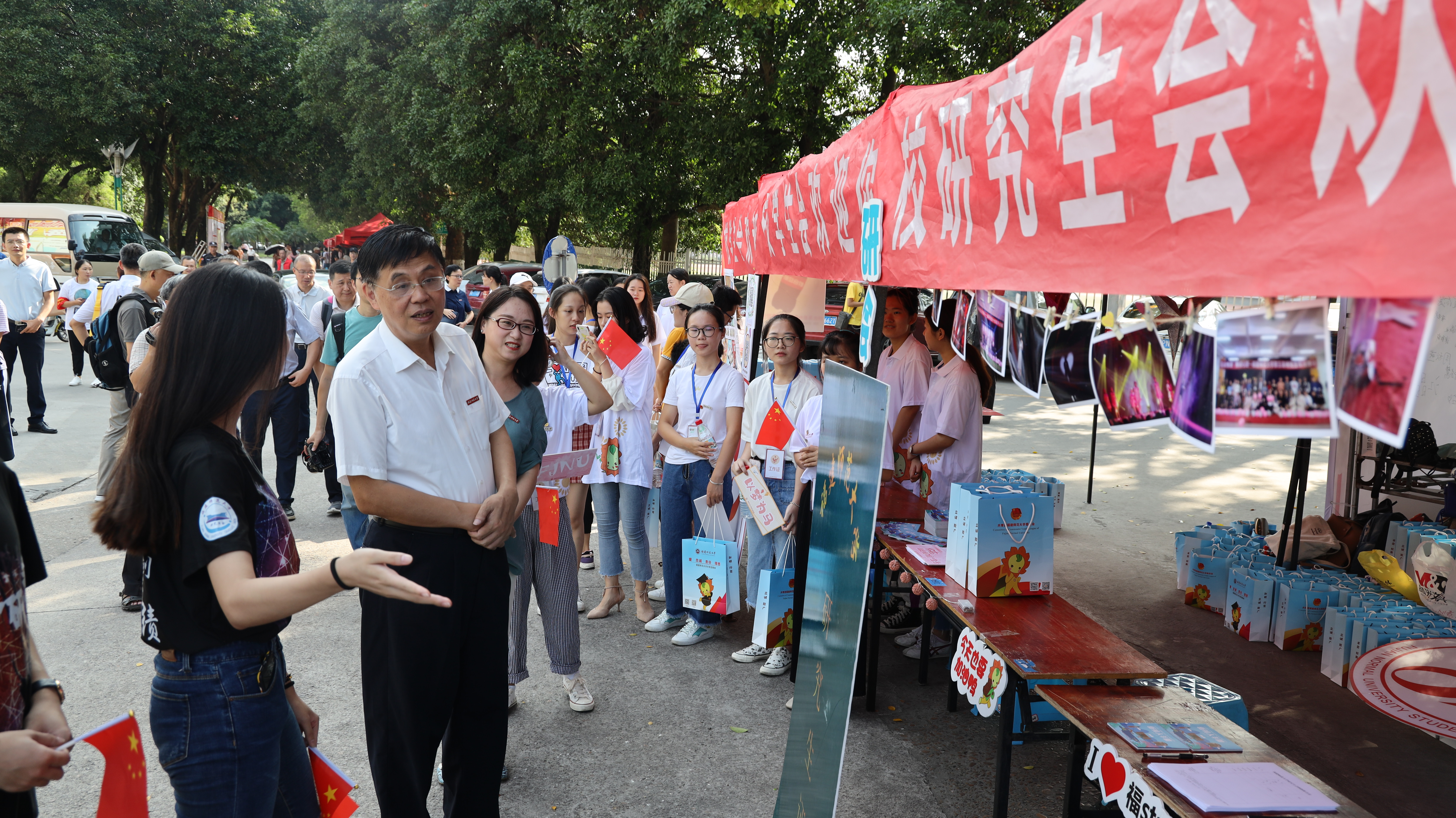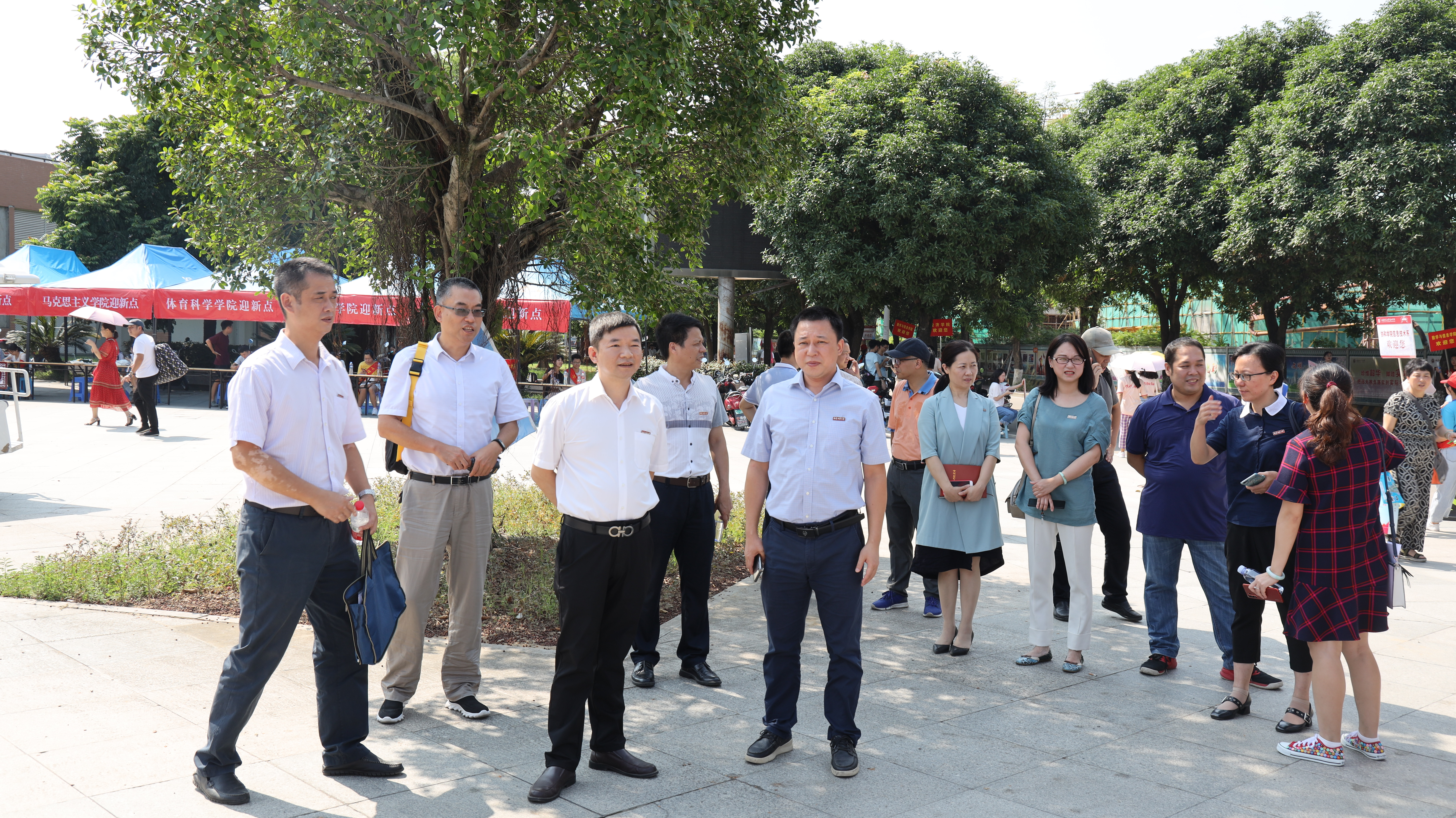 校领导李宝银、叶燊、涂荣带领有关部门负责人,先后走访了旗山、仓山校区各迎新点、新生报到点,检查迎新工作情况,看望新生、家长、工作人员和学生志愿者,充分肯定了各学院结合专业优势开展各具特色的迎新做法。校领导与新生及家长们亲切交谈,代表学校热烈欢迎新同学来到福建师大这个大家庭,勉励同学们珍惜校园时光,科学规划大学学习生活,努力成长为德智体美劳全面发展的时代新人。