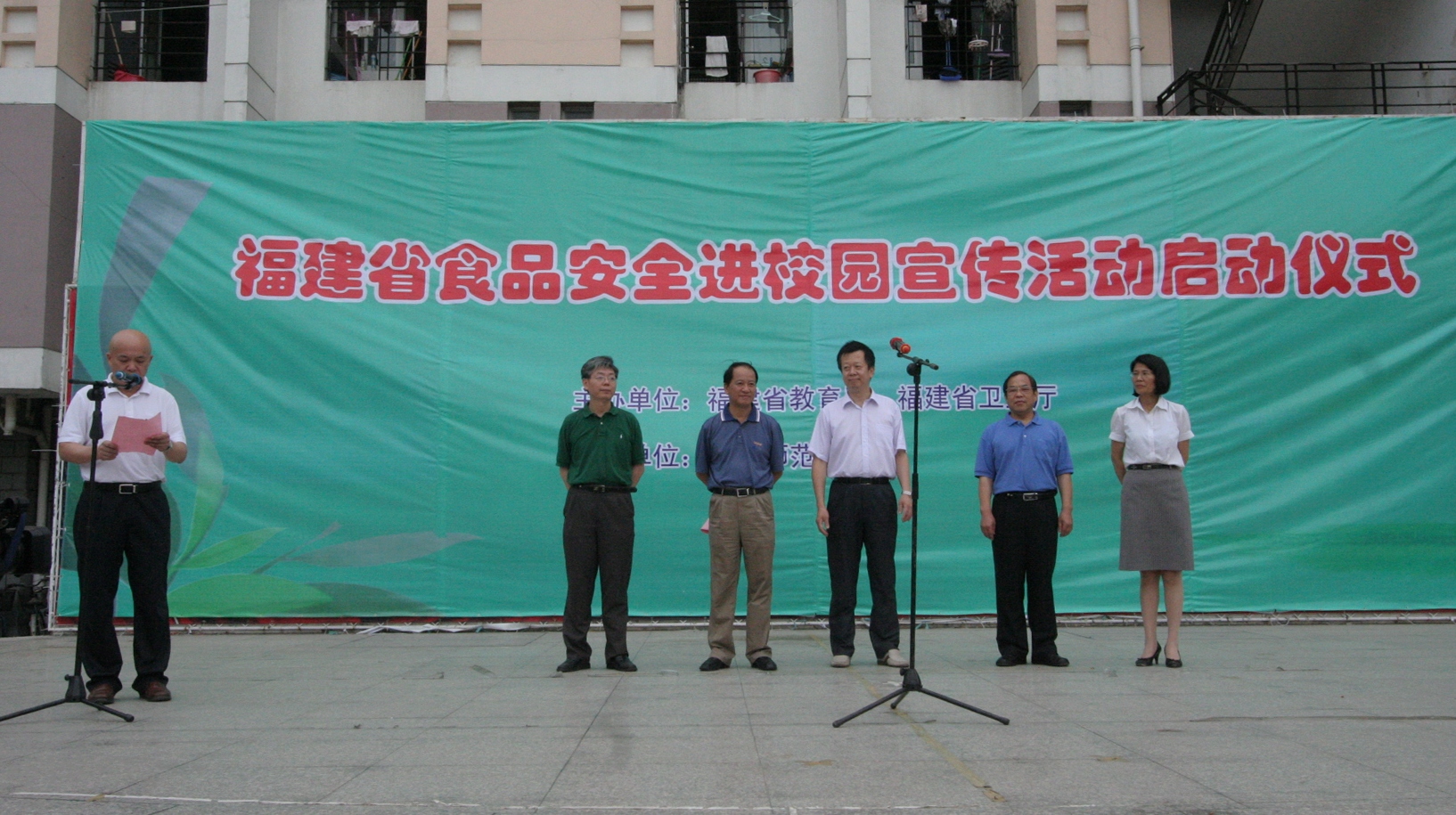 6月27日下午,由省教育厅、省卫生厅主办,我校承办的“福建省食品安全进校园宣传活动”启动仪式在我校旗山校区共青团广场举行。省委教育工委副书记、省教育厅党组成员刘剑津,省卫生厅副巡视员吴兆燊,省食安办蒋爱民处长,省卫生厅赖以刚处长,校党委罗萤书记、许明副校长,学校有关部门负责人和师生代表参加了启动仪式。启动仪式由许明主持。