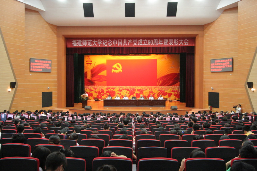 校党委罗萤书记在会上讲话。他说,中国共产党90年的历史,是为中华民族的独立、解放、繁荣,为中国人民的自由、民主、幸福而不懈奋斗的90年,也是推动人民教育事业实现历史性进步的90年。90年的发展事实雄辩地证明:中国共产党是一个伟大、光荣、正确的党,是中国特色社会主义事业的坚强领导核心。坚持中国共产党的领导是历史的选择、人民的选择。他指出,近年来,学校始终坚持党对教育事业的领导,全面贯彻党的教育方针,乘着改革开放、科教兴国和海西建设的东风,围绕中心抓党建、促发展,学校的综合实力和核心竞争力大幅提升,为建设高水平大学奠定了坚实的基础。在学校发展进程中,各级领导班子的领导核心作用、基层党组织的战斗堡垒作用、全体党员的先锋模范作用充分发挥,为学校的改革发展注入了强大的动力。