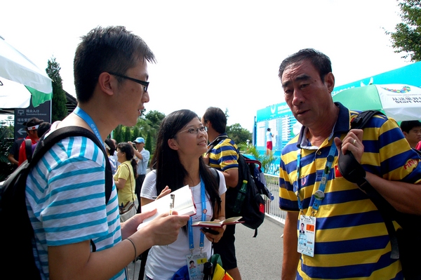 根据大会统一安排,我校3名注册大学生记者分别对排球、乒乓球、健美操三个比赛项目进行跟踪报道。在短短一周内,她们共发表微博150条、采写稿件15篇。其中,4条微博在《中国青年报》刊登,一条入选“单日最强微博”;林艳的《不懂比赛规则的小朋友如何看比赛?》、郑涵彬的《同样的战场,不一样的战斗》两则新闻稿在《中青在线》刊发。另外2名志愿者则被安排在深圳体育场入口负责引导观众,每天站岗7小时以上,展现了师大学子的良好精神风貌。
