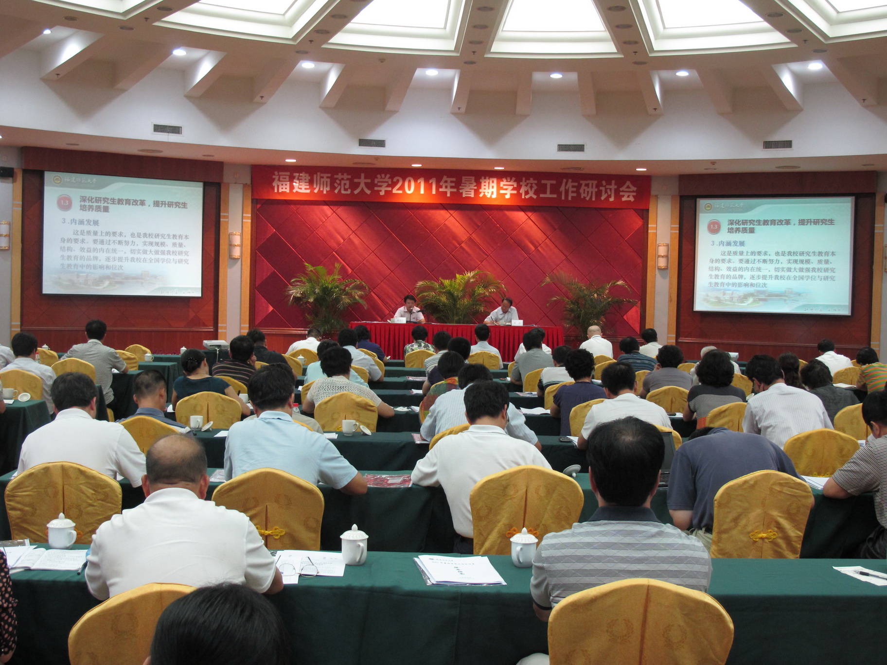 22日上午,黄汉升校长代表校党委、校行政作了题为《深化改革,提高质量,加快高水平大学建设步伐》的主题报告,从学科学位点建设和研究生教育、人才队伍建设、本科人才培养质量、现代大学制度建设四个方面全面总结了我校高水平大学建设取得的阶段性成效,深入分析了学校在建设高水平大学进程中存在的问题和不足,并围绕建设高水平大学这一战略目标,提出了进一步加强内涵建设、提高办学质量的具体思路和举措。