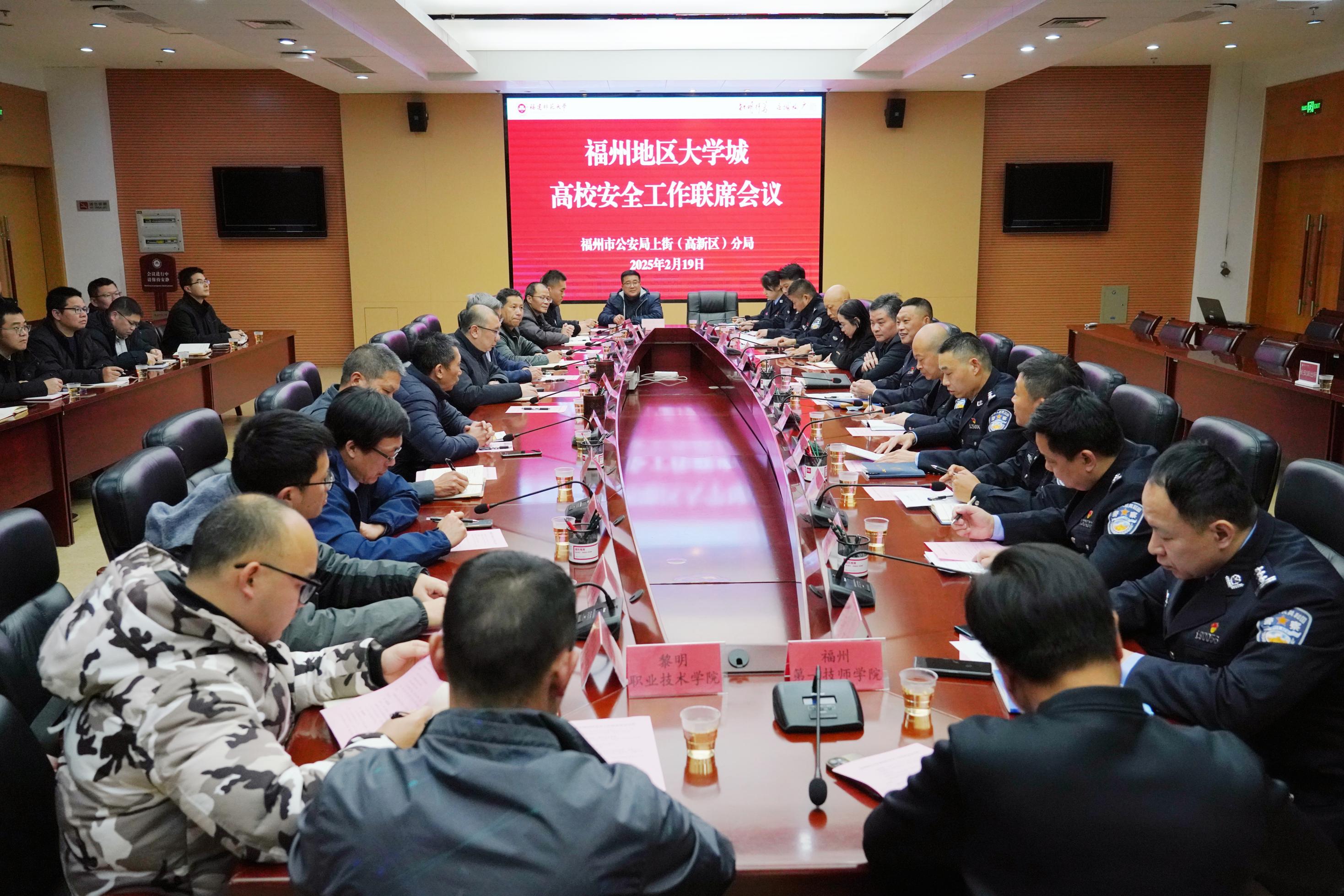 会议于2月19日在旗山校区召开。福州高新区管委会副主任、福州市公安局上街(高新区)分局局长余根钦,市公安局相关部门负责人,市公安局上街(高新区)分局治安、刑侦、国保、巡特反恐、网安大队及辖区各派出所负责人,上街(高新区)交警大队负责人,大学城各高校保卫部门负责人以及大城办综合协调处负责人参加联席会议。我校副校长吴剑锋,学生工作部负责人和有关二级学院党委副书记应邀出席。会议由福州市公安局上街(高新区)分局副局长郑德宁主持。