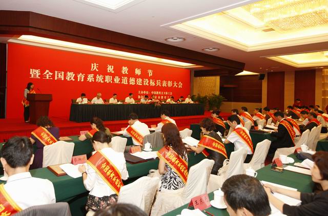 在第27个教师节来临之际,中国教科文卫体工会于9月6日在北京召开庆祝教师节暨全国教育系统职业道德建设标兵表彰大会,全国百名教育工作者获得表彰。中华全国总工会副主席王玉普、教育部副部长刘利民等领导为获奖代表颁奖并发表讲话。 我校数学与计算机科学学院院长李永青教授作为福建省教育系统获此荣誉的唯一代表出席了表彰大会。 (数学与计算机科学学院 虞永飞)