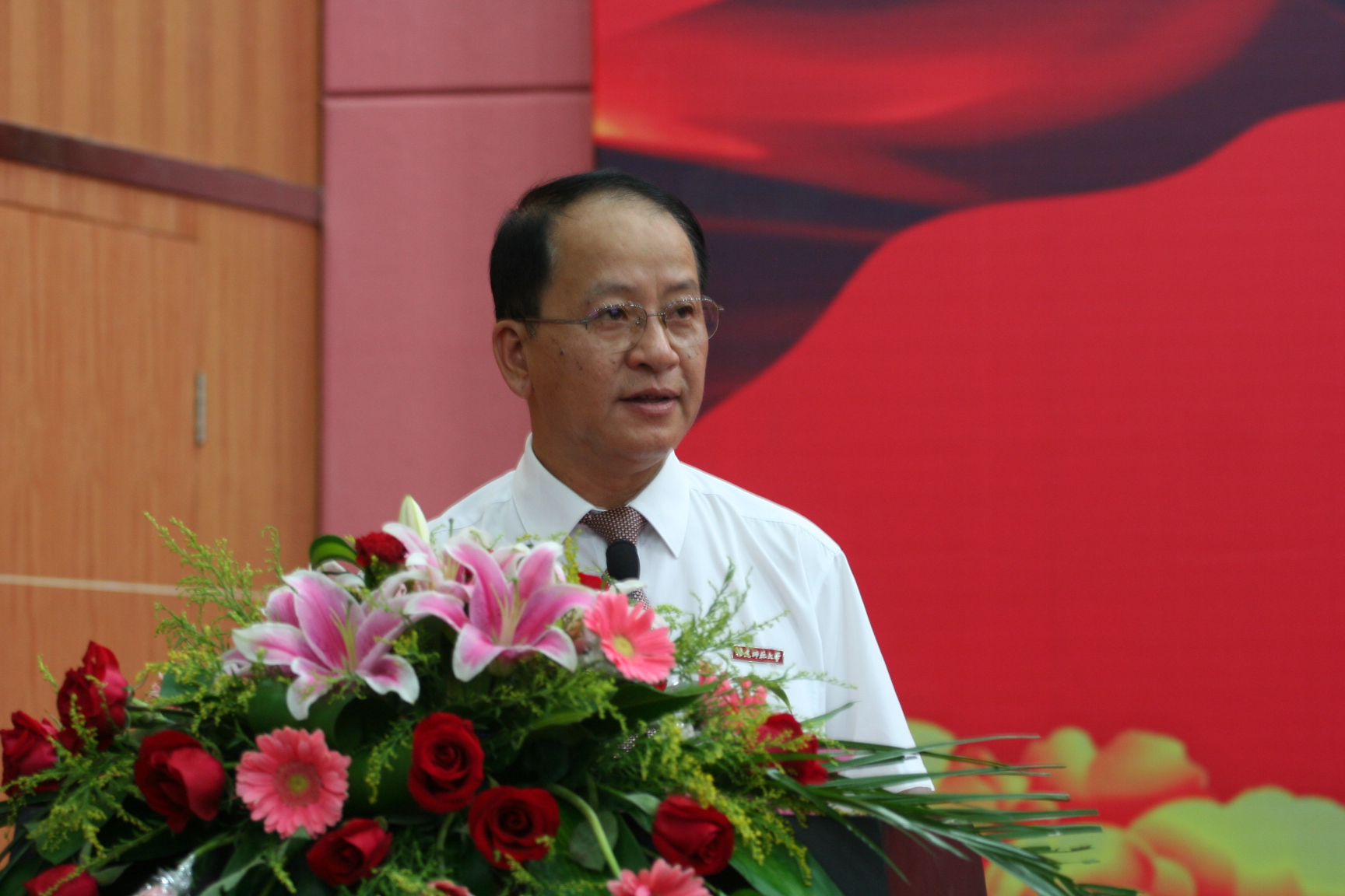 校党委书记罗萤首先致辞。他代表校党委和校行政,向辛勤耕耘在教学、科研、管理和服务第一线的广大教职员工致以良好的祝愿和节日的问候,向受到表彰的先进集体和先进个人表示热烈的祝贺和崇高的敬意,希望全校师生与受表彰对象一同感受光荣、分享喜悦,并以他们为榜样,在全校掀起学习先进、争当先进的热潮,推动学校各项事业科学发展、跨越发展。