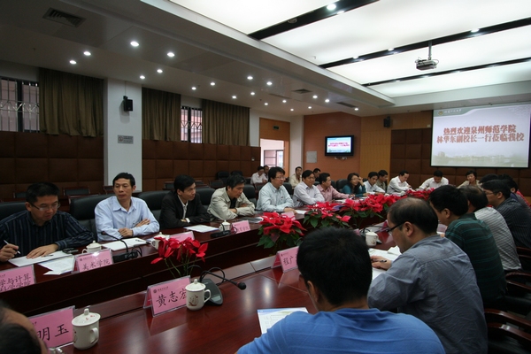 会上,黄汉升对来访客人表示热烈欢迎,指出我校与泉州师范学院自今年年初签订新一轮支援协作协议以来,双方合作不断加强,各方面工作扎实有效,学校将认真履行协议,进一步强化与泉州师范学院的对口支援协作关系。林华东感谢我校的长期支持和热情接待,希望我校一如既往地对泉州师范学院给予更多的帮助。双方就硕士生导师选聘和联合培养硕士研究生等事宜深入交换了意见,并达成了初步意向。