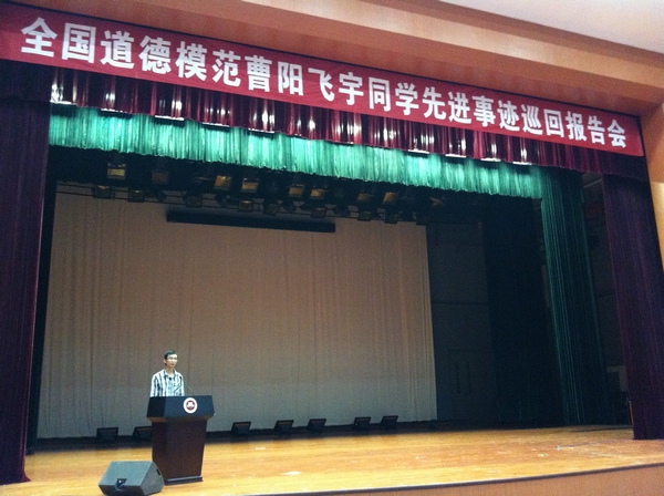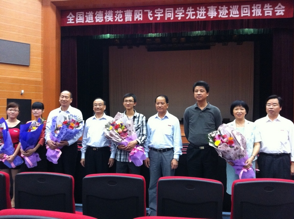 报告会后还举行了学习全国道德模范曹阳飞宇同学先进事迹座谈会。参加座谈的各校学生代表纷纷表示十分钦佩曹阳飞宇同学,将以他为榜样,努力学好科学文化知识,回报恩亲、奉献社会。