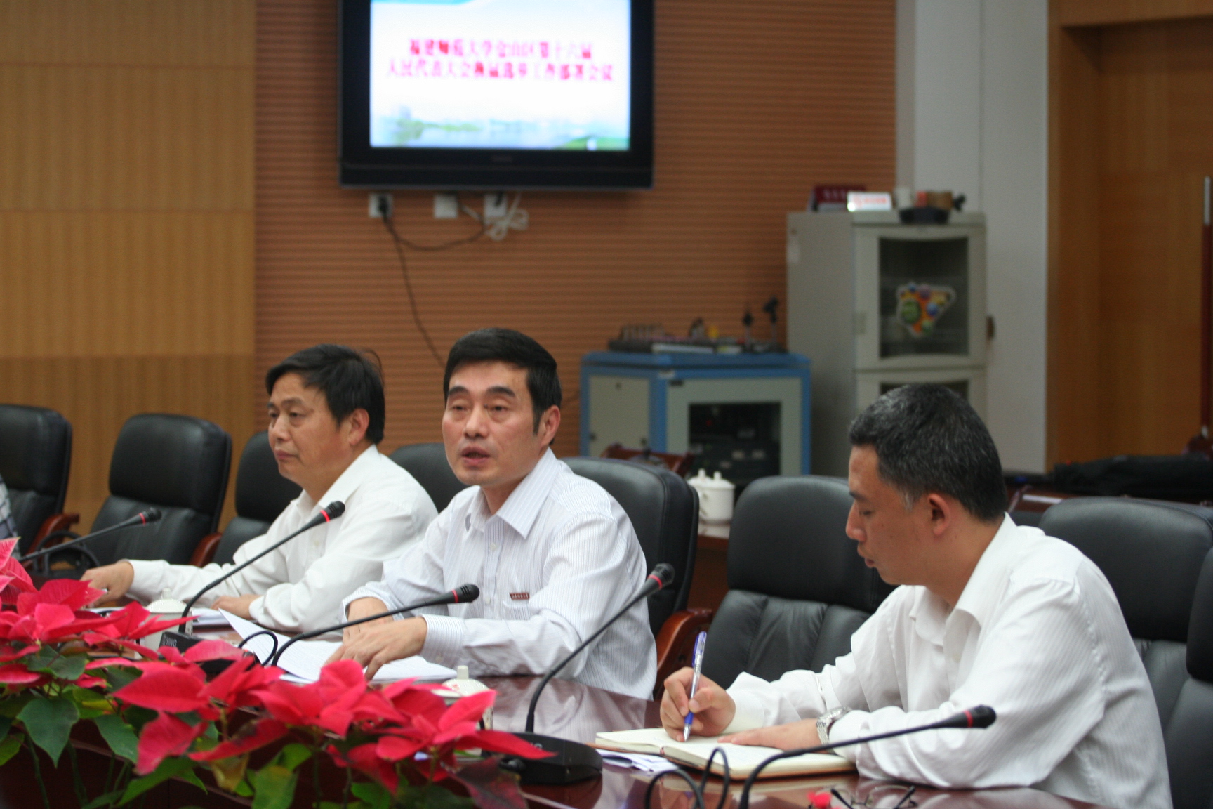 会议于11月3日下午在旗山校区第十会议室举行。校党委游小波副书记,校仓山区、镇人大代表换届选举工作领导小组成员,各分党委、党总支、直属党支部负责人参加了会议。会议传达学习了《仓山区人大常委会关于2011年区、镇两级人民代表大会代表换届选举工作方案》,部署了我校三个选区人大代表换届选举工作。