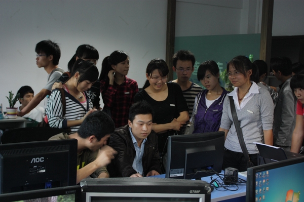 在福州软件园863孵化器大楼,同学们参观了由我校信息技术学院5名2010届毕业生创办的公司——福州未来者文化传播有限公司。我校于2010年12月对该创业项目给予了5000元的奖励。同学们观看了公司宣传片,公司副总经理连孝杰和工作人员与大家分享了公司创业团队在校期间以及毕业后的创业过程,介绍了公司的业务范围、技术特点、盈利模式和发展目标。