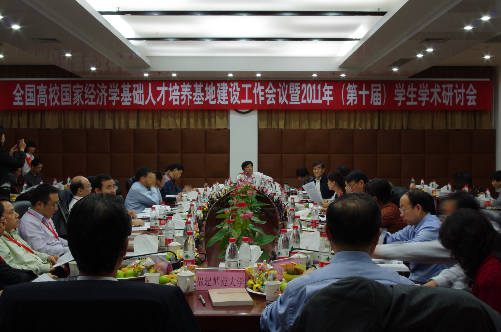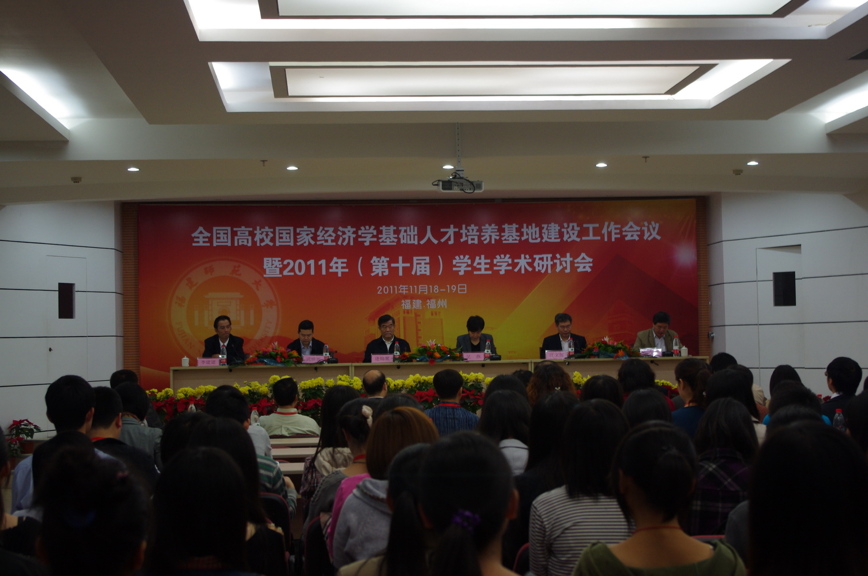 11月19日,由教育部高校经济学类学科教学指导委员会主办,我校经济学院承办的“全国高校国家经济学基础人才培养基地建设工作会议暨2011年(第十届)学生学术研讨会”在旗山校区召开。教育部高教司财经政法与管理教育处吴燕处长、武世兴调研员,教育部高校经济学类学科教学指导委员会主任委员、南开大学原副校长逄锦聚教授,我校汪文顶副校长,以及来自北京大学、中国人民大学、南开大学和我校等13所高校的国家经济学基础人才培养基地负责人、师生代表,我校相关部处负责人等100多人参加了会议。