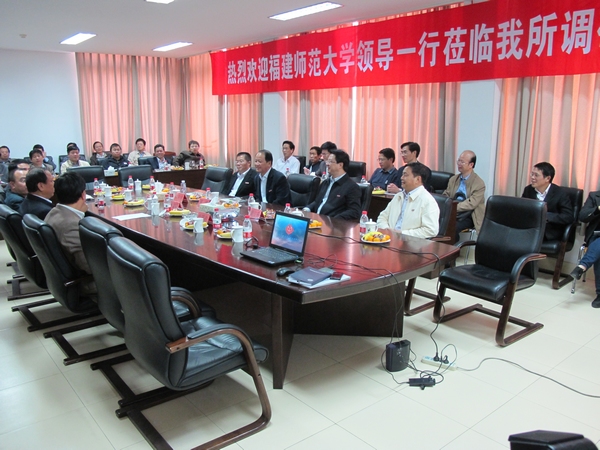 中科院院士、中科院福建物构所所长洪茂椿对我校一行的到来表示欢迎,并重点介绍了物构所的历史沿革、发展现状、重点工作和发展规划。他强调,胡锦涛总书记在清华大学百年校庆讲话中强调要加强协同创新,就是要求各个创新主体之间加强合作。物构所与师大长期以来关系密切,有着良好的合作基础,希望双方能够整合、集成优势资源,加强交流,互相学习,实现共赢。