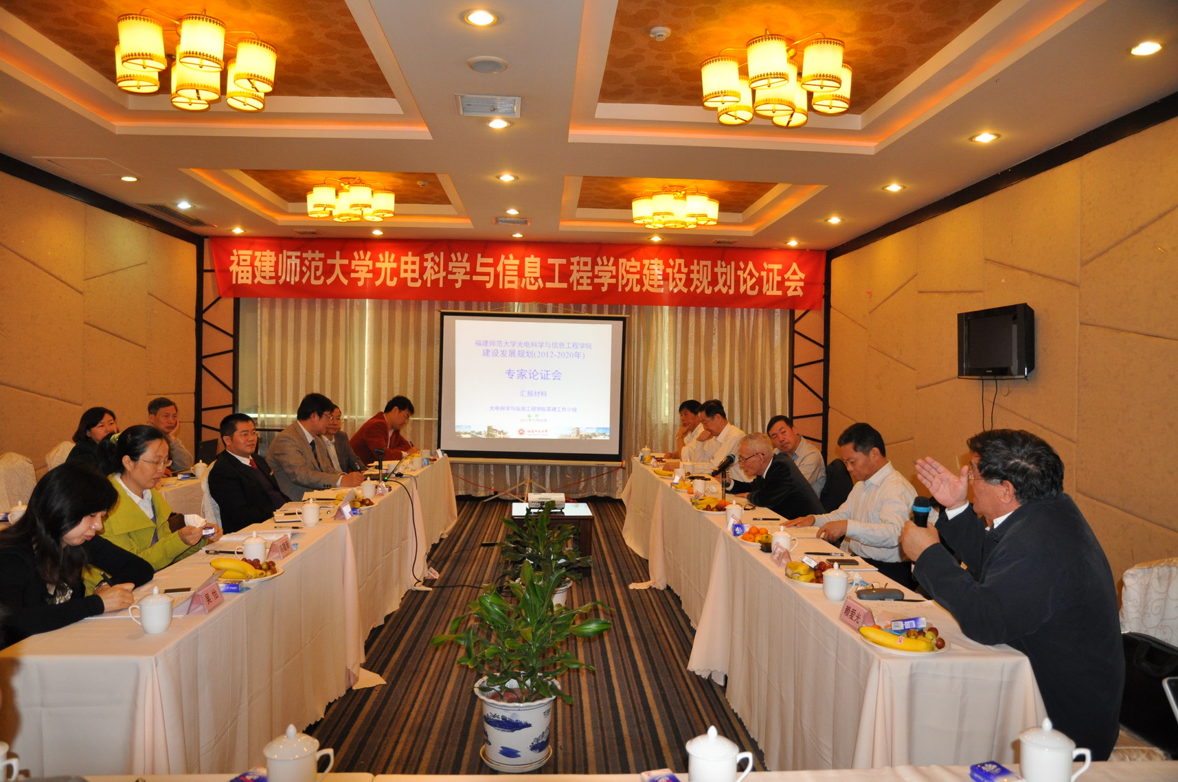会议于11月25日在福州召开。由中国科学院院士、中国科学院半导体研究所原所长王启明教授任组长,浙江大学信息学部主任、现代光学仪器国家重点实验室主任刘旭教授任副组长,东南大学移动通信国家重点实验室沈连丰教授,厦门大学物理与机电工程学院黄元庆教授,福建光学技术研究所名誉所长赖爱光教授级高级工程师,福建省信息化局副局长邵玉龙教授,我校激光与光电子技术研究所所长谢树森教授为成员的专家组应邀开展论证工作。校领导罗萤、凌启淡,光电科学与信息工程学院筹建工作小组全体成员和有关学科专业学术骨干参加了会议。