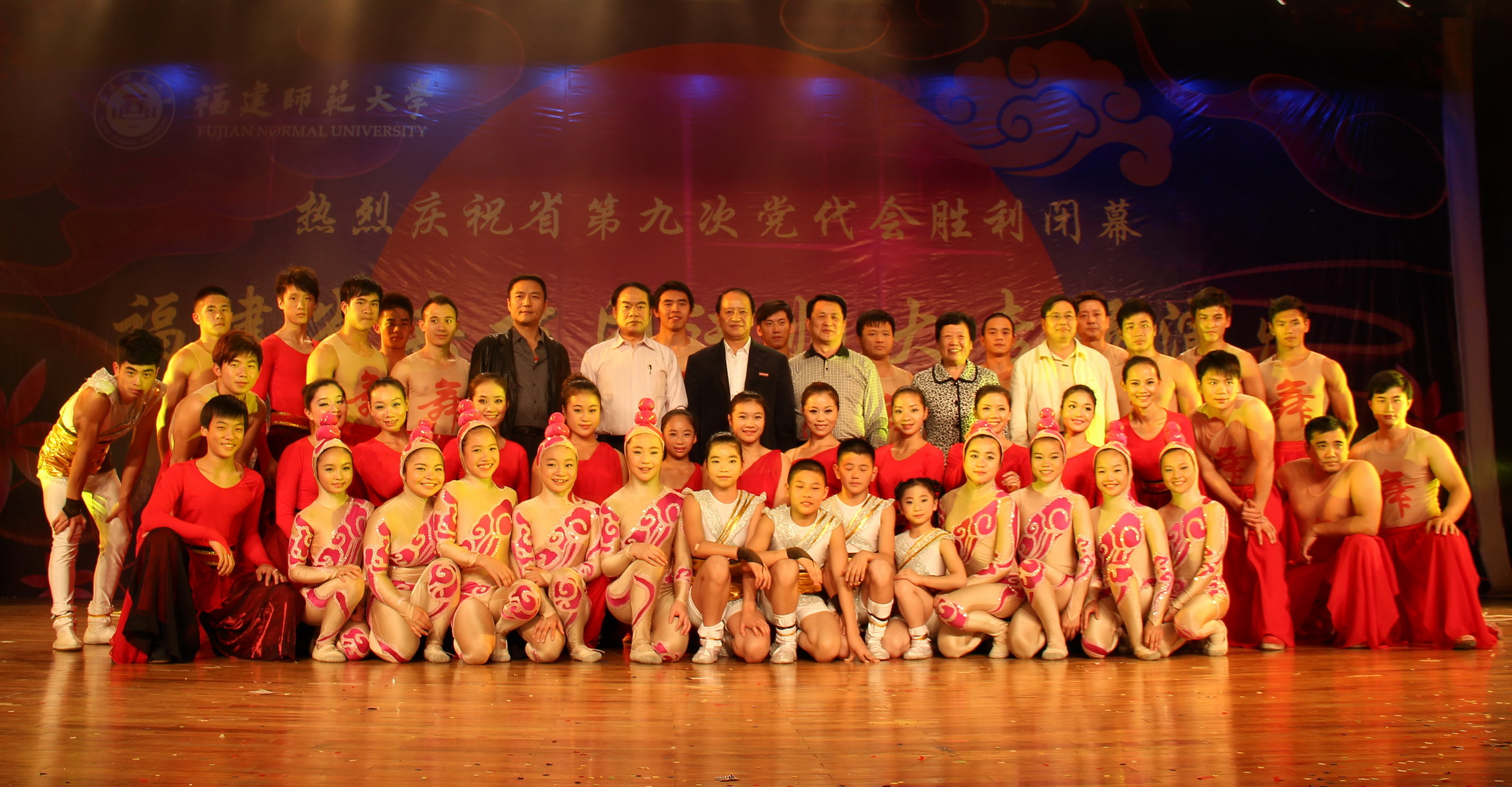 为热烈庆祝福建省第九次党代会胜利闭幕,大力弘扬“爱国爱乡、海纳百川、乐善好施、敢拼会赢”的福建精神,让广大师生共享我省文化发展成果,福建省杂技团进师大专场演出于11月27日晚在旗山校区青春剧场欢乐开场。省文联党组书记处书记、副主席罗训涌,校党委书记罗萤,校纪委书记许歌平,省杂技团团长林防等嘉宾和全校1000多名师生共同观看演出,感受精彩的杂技艺术。