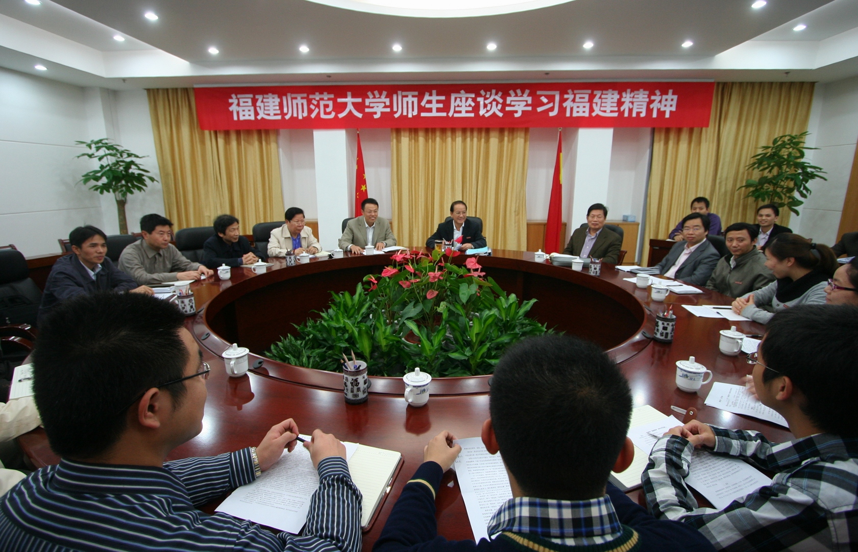 省委书记孙春兰同志在省第九次党代会上,提出大力弘扬“爱国爱乡、海纳百川、乐善好施、敢拼会赢”的福建精神,引起了社会各界的广泛关注和积极反响。11月28日下午,我校在旗山校区第一会议室召开师生座谈会,学习领会“福建精神”。校党委罗萤书记,学校办公室、宣传部、学工部、研工部、校团委负责同志,以及师生代表参加了座谈会。