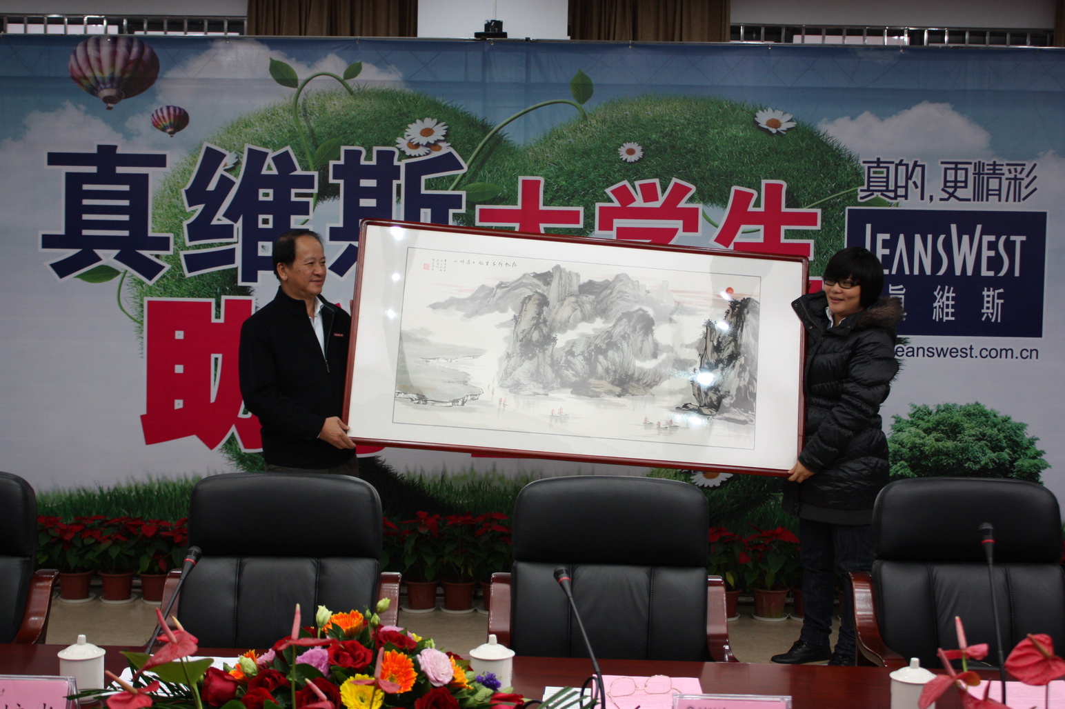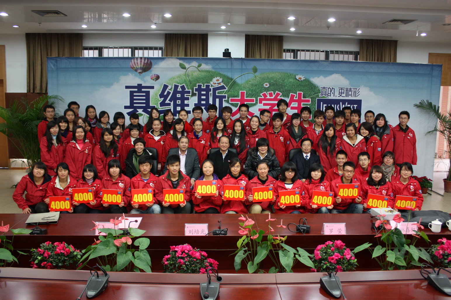 我校与真维斯公司互赠了礼品,与会领导、来宾和全体受助学生合影留念。