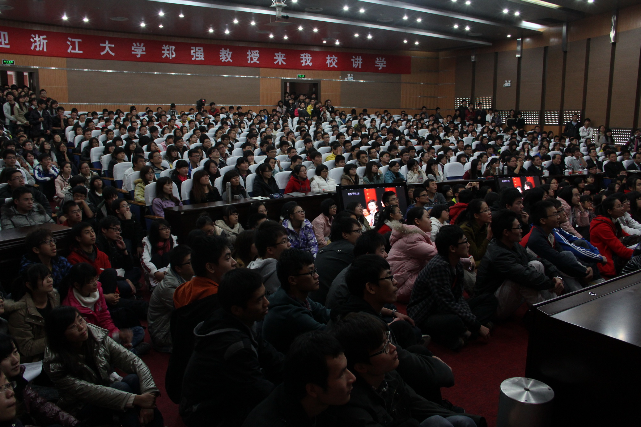 12月13日下午,浙江大学博士生导师郑强教授莅临我校,带来题为“文化 人格 修养 视野——当代大学生的价值取向与历史责任”的专题讲座。全校近800名师生聆听了讲座。校党委罗萤书记主持讲座,凌启淡副校长到场聆听了讲座。