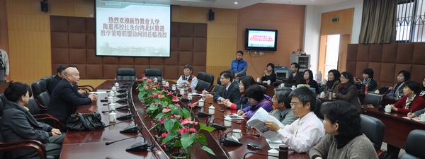 访问团于12月15日到校访问,许明副校长会见了来访客人,双方就新竹教育大学与我校师生交流互访、学科优势互补、教学资源共享及闽台中小学教育交流合作等问题进行了深入的探讨,并达成了合作意向。 港澳台办、附中、附小相关负责人参加了会见。在附小,客人们还观摩了课堂教学并与学校领导、专业教师进行了交流。 (港澳台办 施 伟)