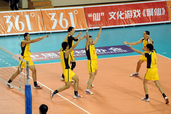福建师大男排庆贺胜利