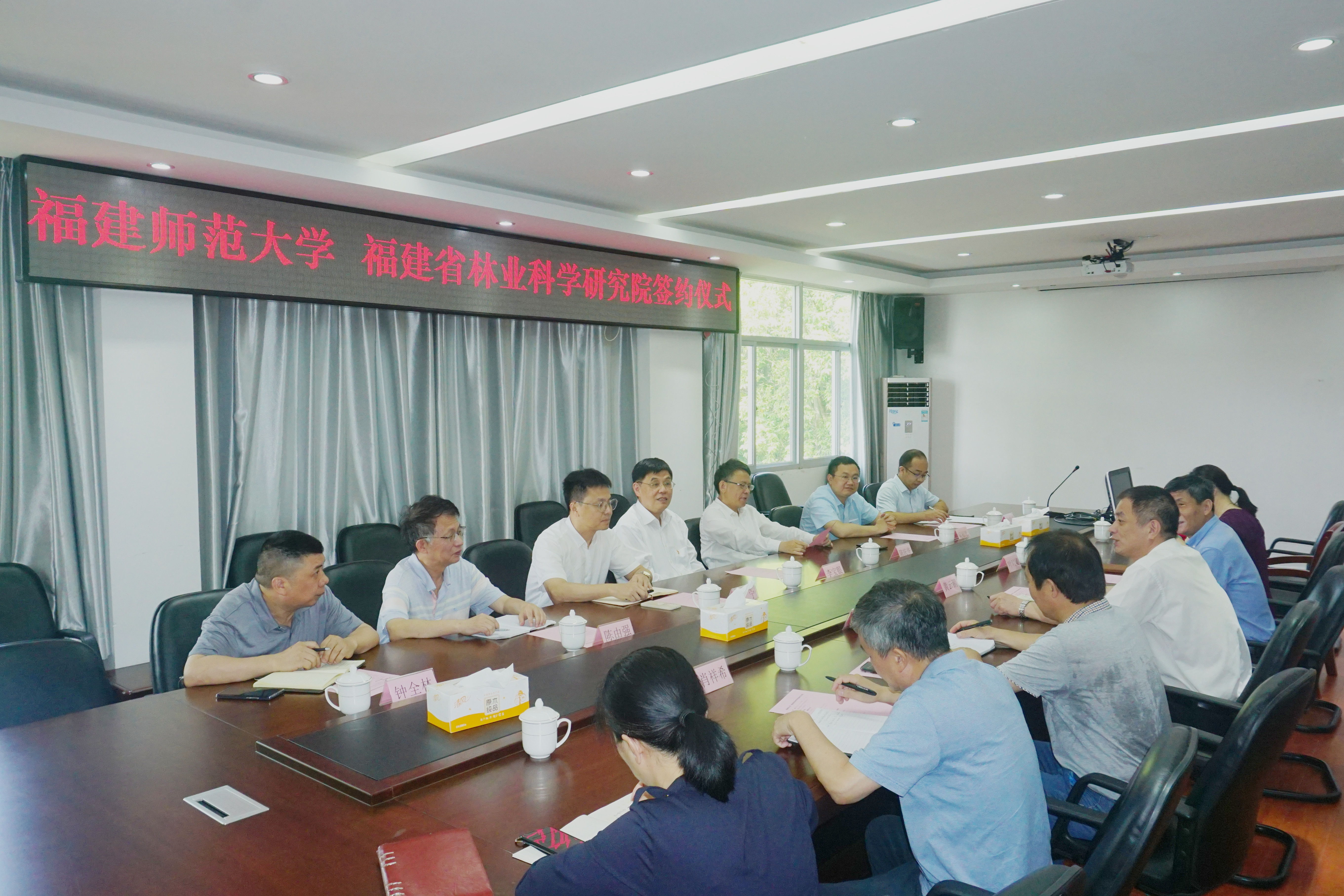 仪式结束后,双方围绕科技人才培养、科技协同创新、科研联合攻关、科研创新平台共建、实践实训基地建设、科技成果转化和示范推广、科普教育宣传等方面,结合福建“十四五”林业发展专项规划,就近期在森林生态、珍贵树种选育和栽培、林木良种及新品种选育、资源品质基因调控与开发利用、林木病虫害防治等研究领域的合作展开座谈交流。