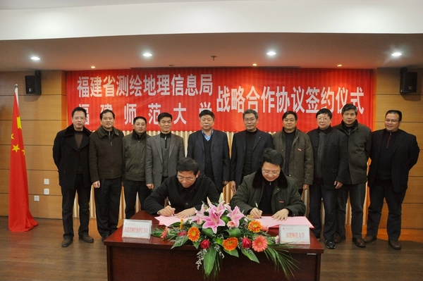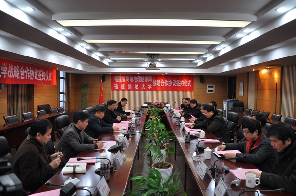 签约仪式于1月5日下午举行。省国土资源厅党组成员、省测绘地理信息局党组书记何清和、局长陈跃进,总工程师、基础地理信息中心主任简灿良,有关处室负责人,我校黄汉升校长、汪文顶副校长,学校办公室、人事处、科技处、研究生处负责人,地理科学学院党政负责人及教师代表参加了签约仪式。