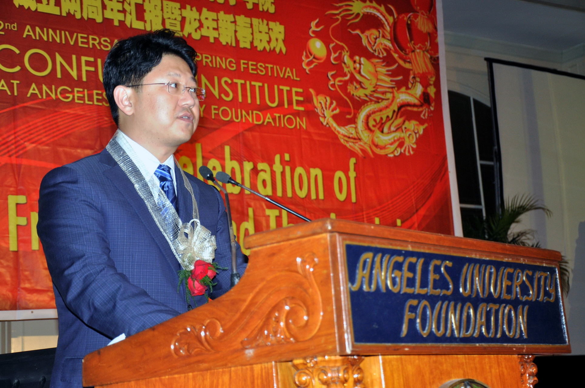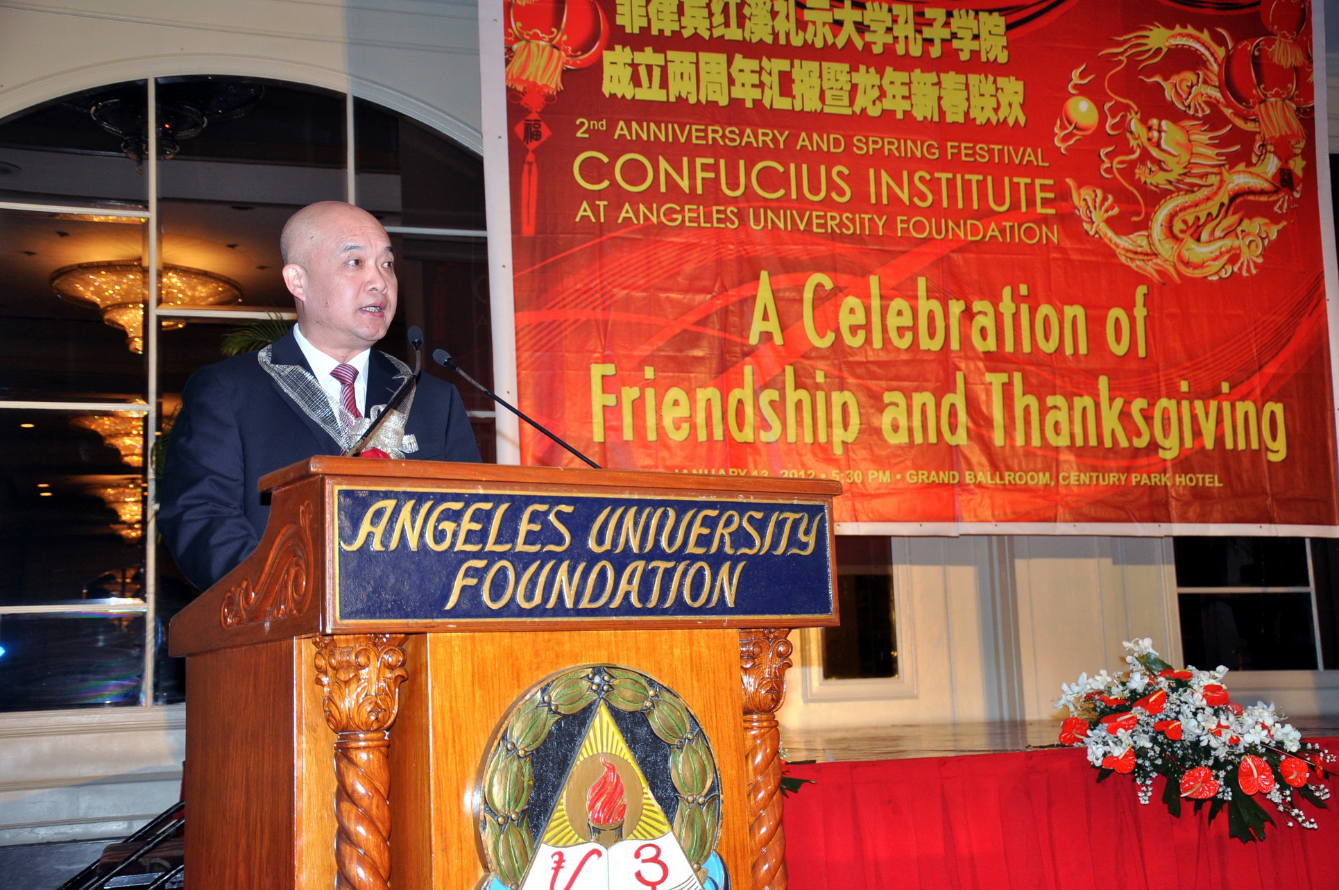 中国驻菲使馆白天代办(代大使)在致辞中高度赞扬了红溪礼示大学孔子学院成立两周年来取得的丰硕成果和社会影响力,向学院获得2011年度全球先进孔子学院致以衷心的祝贺。许明副校长回顾了我校与红溪礼示大学携手创办孔子学院的愉快历程,并对社会各界给予孔子学院的大力支持表示感谢,指出2011年获评全球先进孔子学院,不仅是对学院工作的高度肯定,更意味着这所年轻的孔子学院,将站在更高的起点上,为菲律宾主流社会汉语教学、加强中菲两国的教育和文化交流服务。