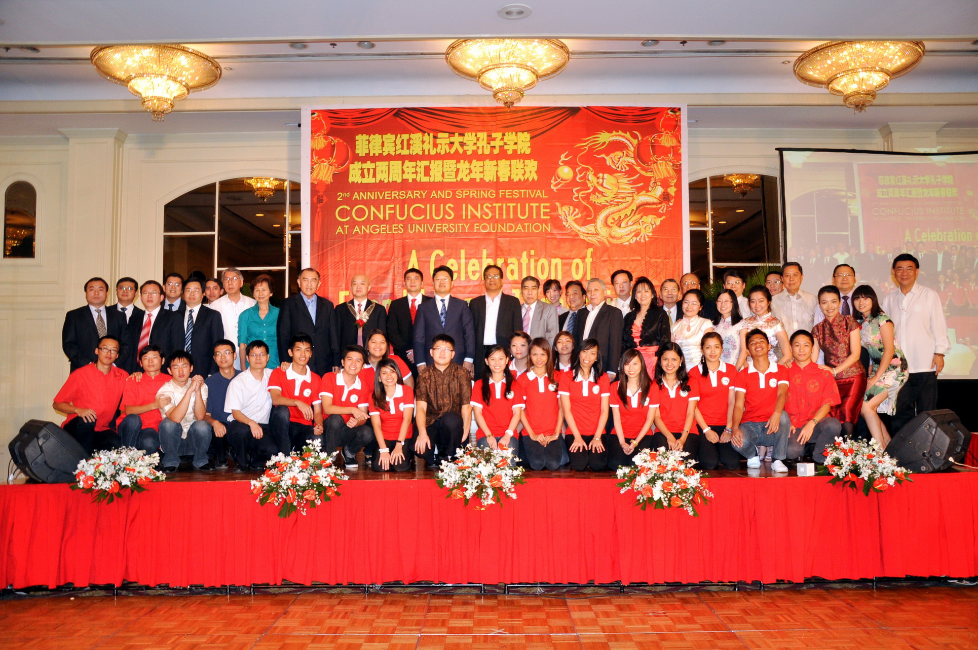 1月13日晚,菲律宾马尼拉世纪饭店灯火通明,喜气洋洋,我校红溪礼示大学孔子学院在此隆重举行两周年工作汇报暨龙年新春联欢会。菲律宾教育部、外交部、海关总署、国家图书馆、副总统办公室等部门及菲律宾国家电网、亚洲开发银行等知名企业和国际性区域组织,悉数派出要员出席庆典,菲律宾参议员Sen.TG Guingona也拨冗出席。许明副校长率我校代表团一行来到现场,与众多嘉宾一起共同见证了这一美好时刻。