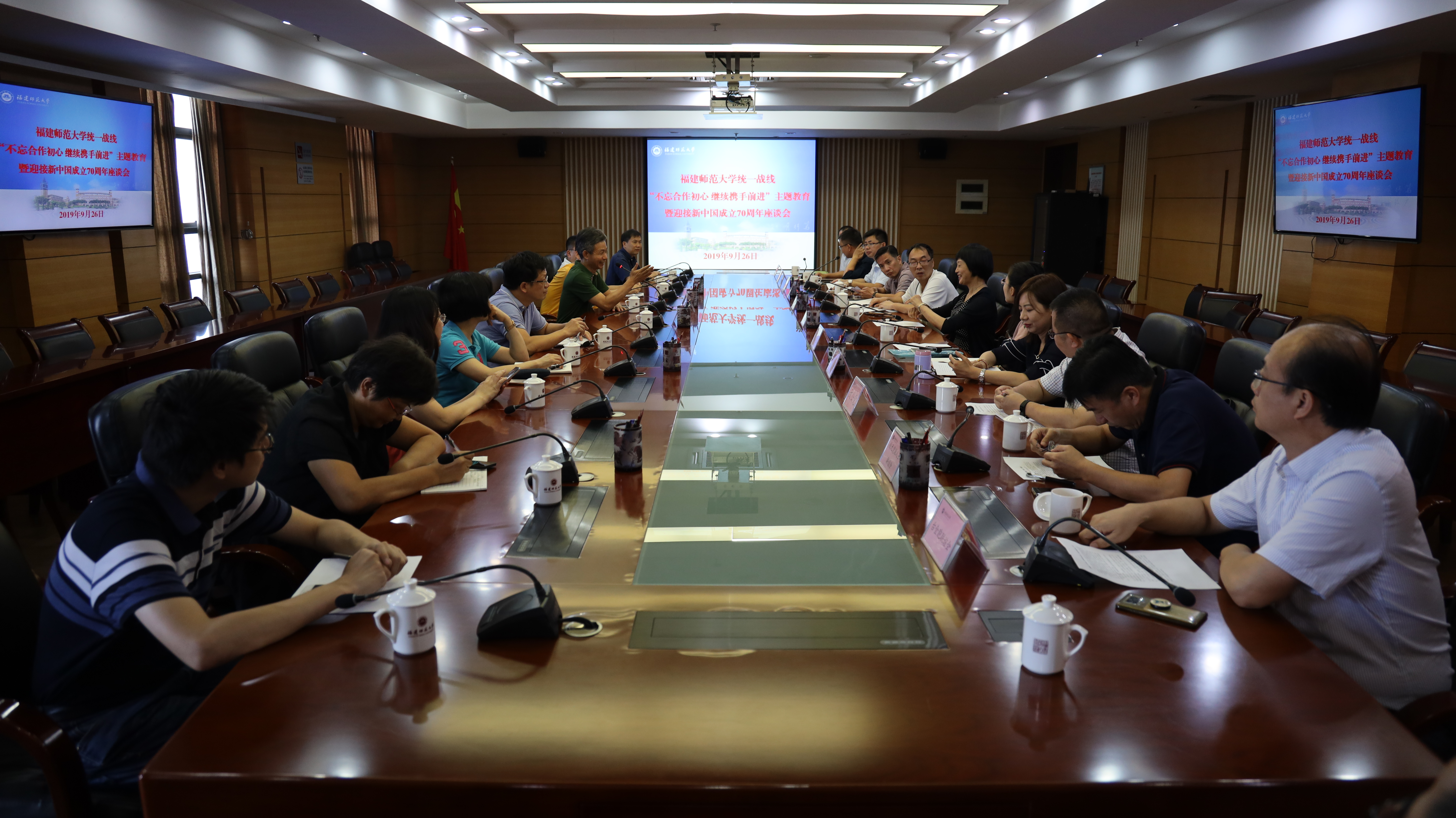 9月26日下午,我校统一战线“不忘合作初心,继续携手前进”主题教育暨迎接新中国成立70周年座谈会在旗山校区第二会议室举行。统战部、校各民主党派、统战团体、无党派人士联谊会负责人及教师代表参加了会议。