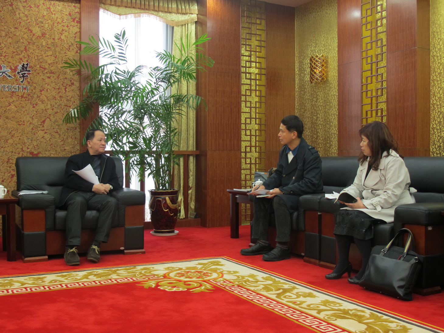3月12日下午,台湾校友林胜勤博士、台湾力正国际有限公司黄幸寓、中华国际企业培训师协会蔡坤燏一行到访母校,商谈成立台湾校友会事宜。校党委罗萤书记亲切会见了3位台湾校友。