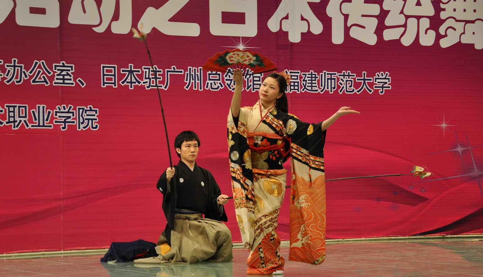 3月21日,日本著名传统舞蹈家藤间万惠女士率领其表演团队访问我校,在演播厅举行“五彩缤纷”系列活动之日本传统舞蹈演出。福建省对外友好协会楚燕丽副会长、日本驻广州领事馆田尻和宏总领事、大手绅太郎副领事,我校许明副校长,福建省人民政府外事办公室相关负责人,福州大学、福建艺术职业学院及我校部分师生观看了演出。
