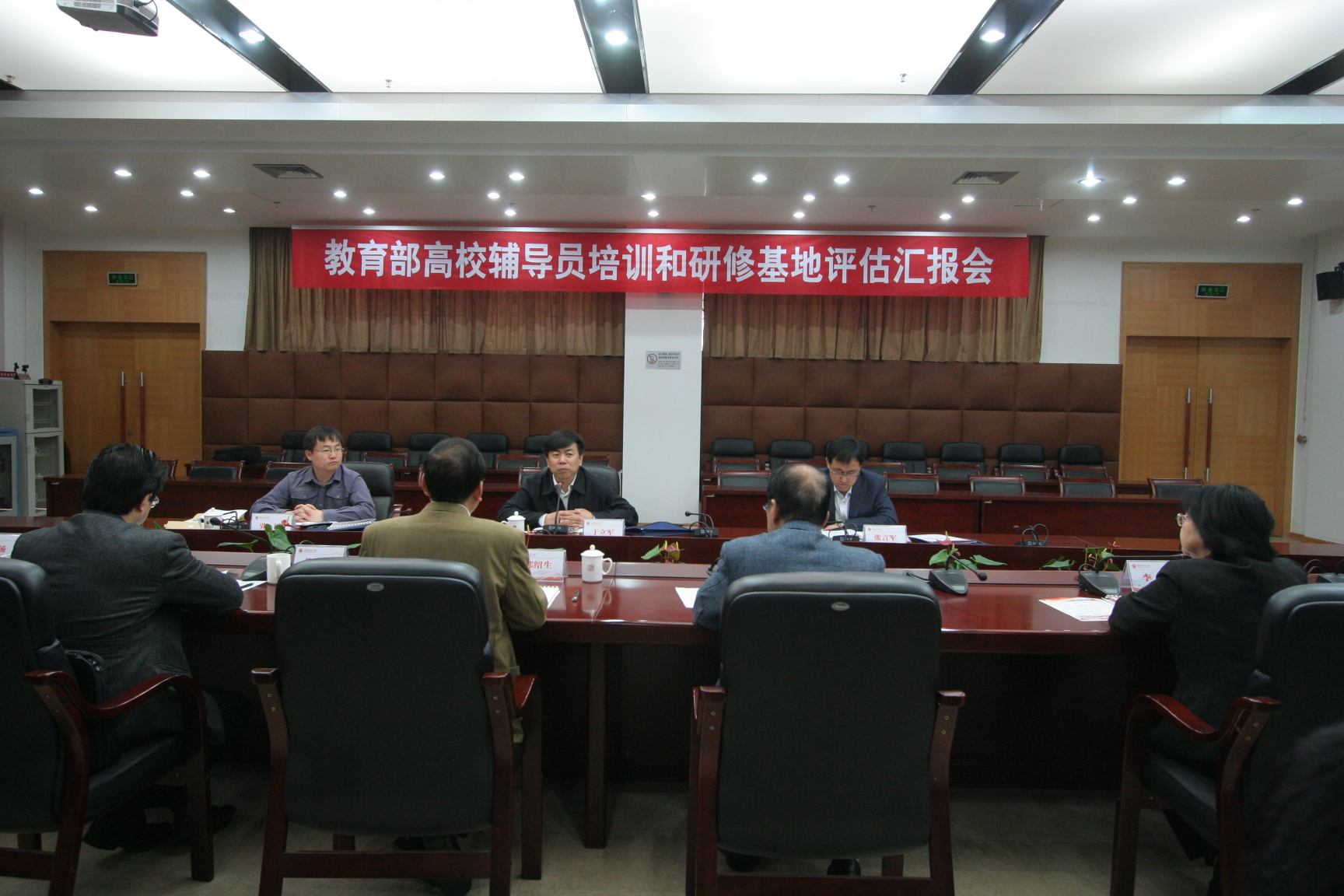 黄汉升校长主持汇报会,代表学校热烈欢迎专家组的到来,向长期以来给予我校辅导员基地热忱关心、大力支持的教育部思政司和省委教育工委、省教育厅表示衷心的感谢。