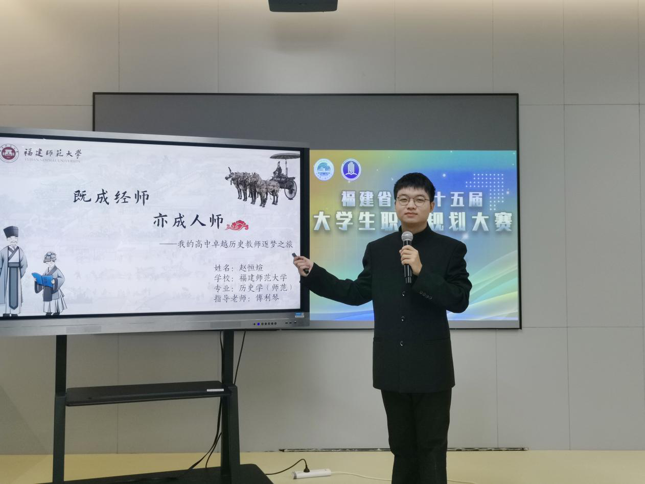 近日,由省教育厅主办的第十五届福建省大学生职业规划大赛决赛落下帷幕。经过激烈角逐,我校社会历史学院赵恒煊同学《既成经师亦成人师》(指导老师:傅利琴)获本科组一等奖,传播学院周涵同学《声声不息周容涵养》(指导老师:纪增长)获本科组二等奖。社会历史学院傅利琴老师获“优秀指导教师”称号,学校获“优秀组织奖”。据悉,本次大赛全省共有85所高校、159位同学参赛,经专家网评,70位同学进入决赛。(校团委)