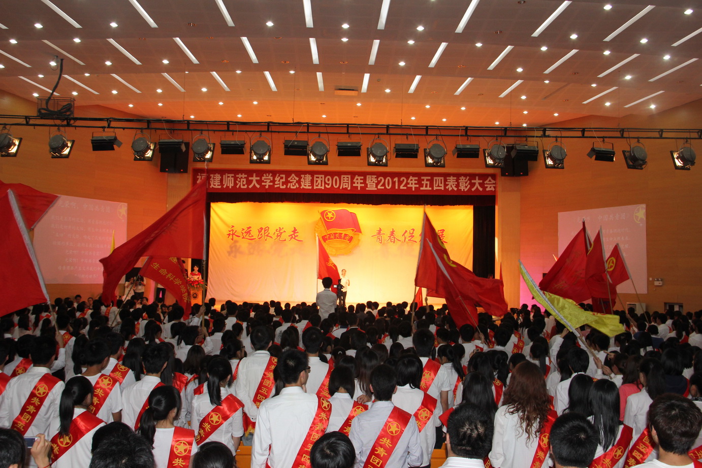 大会通过DV展播,从组织建设、校园文化、素质拓展、实践服务四个篇章,回顾了过去一年学校各级团学组织在各级各类团学活动中取得的突出成绩,展现了我校团员青年的青春风采。与会领导为先进集体和个人代表颁奖,并与师生共同欣赏了《海峡同乐》、《船政学堂》、《湄洲女》等我校在第三届全国大学生艺术展演中的获奖节目。最后,全场师生饱含深情地高唱团歌《光荣啊,中国共青团》,现场团旗、校旗、院旗飘扬,汇成红色的海洋。