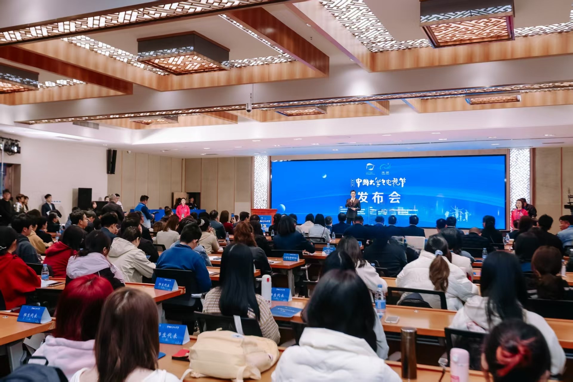 3月22日,由中国电视艺术家协会、中国传媒大学主办,中国教育电视台、福建省教育厅、福州市人民政府承办的第十三届中国大学生电视节活动发布会暨电视精品创作交流活动在我校旗山校区举行。中国电视艺术家协会主席阎晓明,中国电视艺术家协会分党组书记、驻会副主席闫少非,中国传媒大学党委副书记、校长张树庭,中国教育电视台党委书记、台长袁小平,中国电视艺术家协会副主席、北京师范大学教授胡智锋,国家广电总局电视剧司副司长朱正文,中国电视艺术家协会分党组成员、副秘书长董涛,中国教育电视台党委委员、副台长吕学武,中国教育报刊社副社长、中国电视艺术家协会行业电视委员会常务副会长张平,甘肃省广播电视总台党委委员、副台长李艳芬,福建省委教育工委委员、省教育厅党组成员、副厅长黄建顺,福州市委常委、福州市人民政府常务副市长张定锋,福建省广播电视局党组成员、副局长陈炎铭,我校党委常委、副校长方千华出席发布会。阎晓明宣布第十三届中国大学生电视节正式启动。