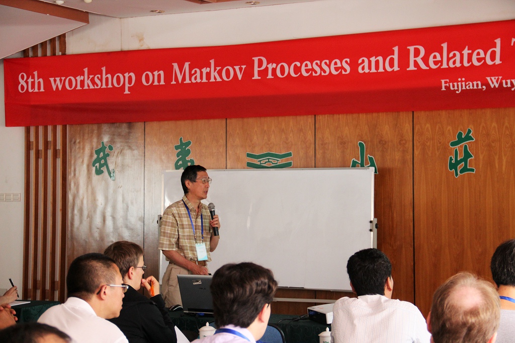 7月18-22日,由我校与北京师范大学联合举办的第八届“马氏过程及相关领域”研讨会(The 8th Workshop on Markov Processes and Related Topics)在武夷山召开。中科院院士、北京师范大学陈木法教授任大会主席,参加会议的有Journal of Theoretical Probability主编、约翰斯•霍普金斯大学Fill教授,The Annals of Statistics副主编、香港科技大学邵启满教授,The Annals of Probability副主编、Delaware大学李文博教授,海外长江学者吴黎明教授、陈振庆教授,长江学者、国家杰青获得者北京师范大学李增沪教授,以及来自美国、英国、德国、法国、日本、墨西哥等海内外专家学者共50多人。