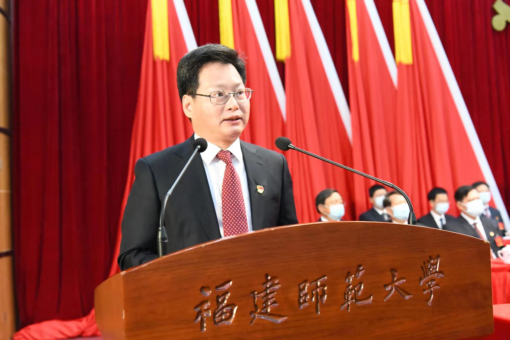 省委教育工委副书记王建南代表省委教育工委向大会的召开表示热烈祝贺。他充分肯定了我校第七次党代会以来取得的各项成就,并提出四点希望:一要科学谋划未来发展蓝图,在推动全省高校高质量发展中走在前作示范;二要深化“三全育人”综合改革,在落实立德树人根本任务上走在前作示范;三要全面加强学校党的建设,在推动全省高校党组织全面进步全面过硬中走在前作示范;四要筑牢意识形态防线,在维护学校政治安全和校园稳定上走在前作示范。他希望我校新一届党委领导班子团结带领全校共产党员和广大师生员工,进一步解放思想、勠力同心、真抓实干、锐意进取,朝着建设一流大学目标阔步前进,为全方位推动高质量发展超越、谱写全面建设社会主义现代化国家福建篇章作出新的更大贡献。