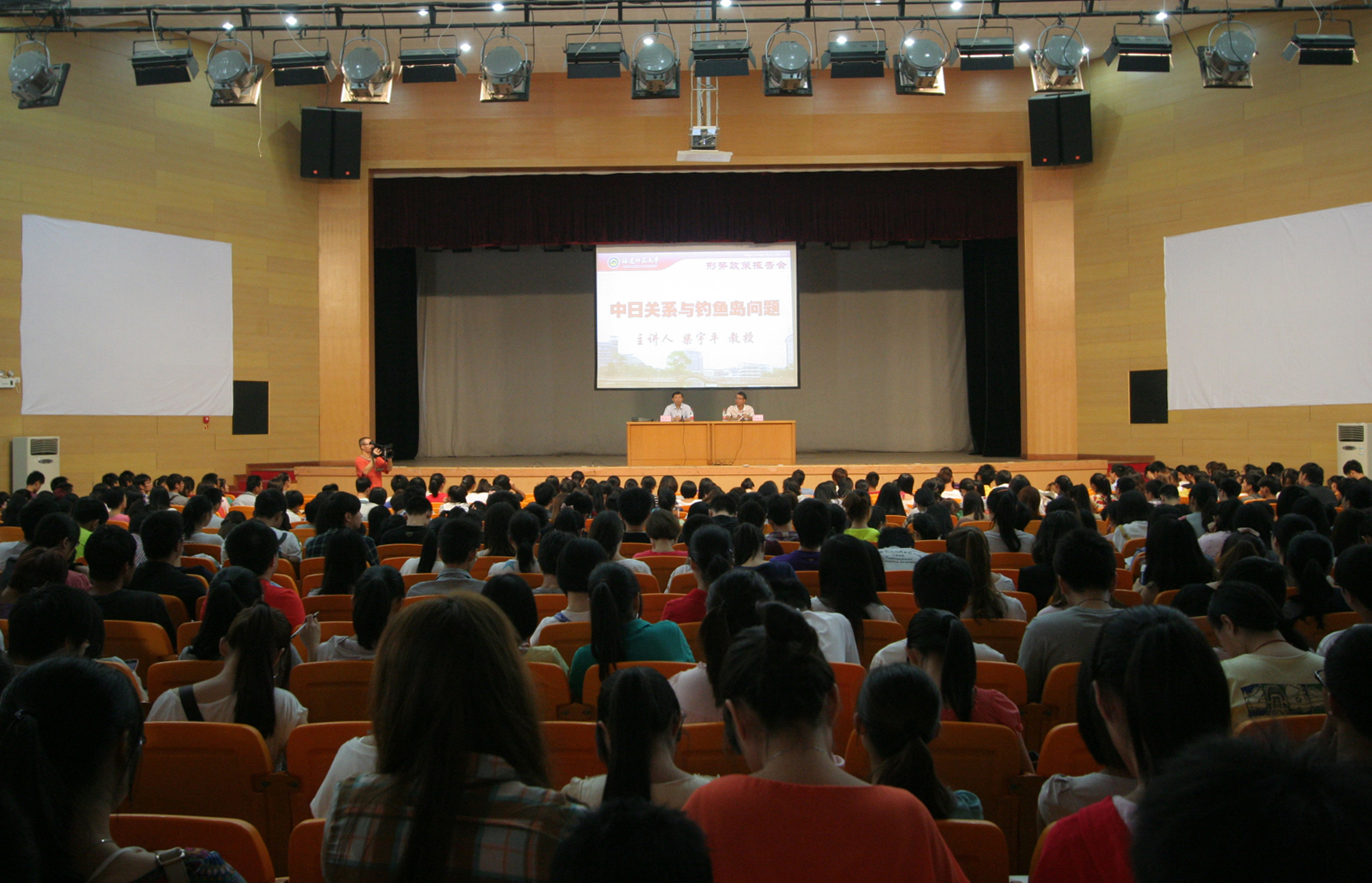 上午9点,学校在旗山校区青春剧场举办形势政策报告会,邀请我校公共管理学院柴宇平教授作“中日关系与钓鱼岛问题”主题报告,全校近千名青年学生聆听了报告。会上,柴教授从历史的角度阐明了钓鱼岛自古以来就是中国的领土,深入分析了当前的中日关系和钓鱼岛问题。整场报告紧扣热点、思路清晰、深入浅出,使广大青年学生对中日关系和钓鱼岛问题有了更加深入的了解、更加理性的认识。