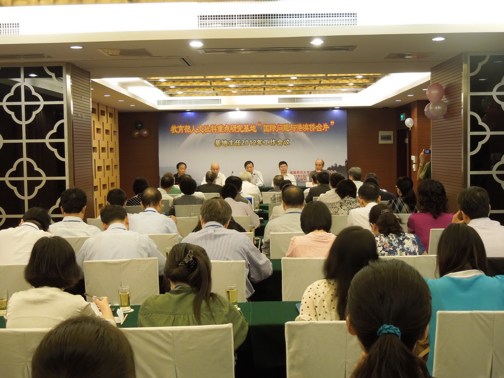 9月23日,由我校闽台区域研究中心主办的教育部人文社科重点研究基地“国际问题与港澳台侨片”基地主任2012年工作会议在福州召开。教育部社科司何健处长,“国际问题和港澳台侨片”14个重点研究基地主任、副主任、科研秘书以及综合学部委员等40多位专家、学者参会。