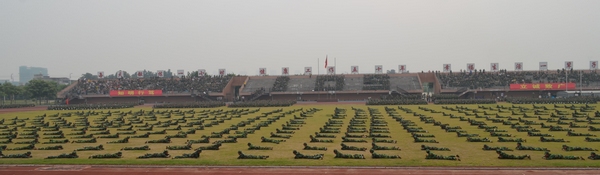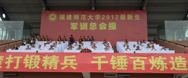 9月19日上午和9月20日上午,我校分别在仓山校区田径场和旗山校区东区田径场举行了2012级新生军训总会操。省军区副参谋长、省征兵办主任林双先大校,73301部队部队长吴际大校,副政委李兴义大校,政治部主任郑健大校,福州警备区参谋长孙根生大校,省教育厅体卫艺教处张海明处长、陈丽红同志,军训团团长袁云福上校、政委陈锦云同志,校领导罗萤、李敏,校长助理郭警修,以及校军训领导小组成员单位和相关学院分管学生工作的负责同志出席了总会操。 2012级新生进行了分列式、军体拳、基本战术动作和战场救护课目的军训成果汇报表演,同学们嘹亮的口号声、整齐的步伐、有力的拳脚、到位的战术动作以及准确的战场施救,引来在场嘉宾和师生的阵阵喝彩和掌声。表演过程中,战术表演方阵排列的“十八”和主席台对面看台上观众方阵排列的“105”更是表达了全体参训官兵和师生喜迎十八大、庆祝我校105周年校庆的爱党、爱国、爱校情怀。 汇报表演结束后,李敏副校长、郭警修助理分别宣布了旗山校区和仓山校区军训各项评比结果。音乐学院、教育学院、外国语学院获得综合评比一等奖;经济学院、传播学院、协和学院文化产业系音乐专业、文学院、社会历史学院获得二等奖;法学院、马克思主义学院、物理与能源学院、美术学院、公共管理学院、信息技术学院图形图像专业获得三等奖。周延锋等14位老师被评为军训优秀辅导员,张恒等25位教官被评为优秀教官。 校党委罗萤书记向军训团全体官兵表达诚挚的感谢和崇高的敬意。他总结了同学们在军训中的诸多收获,希望同学们继续保持在军训中建立起来的同志情、同学情、军民情,把在军训中培养起来的优秀品质、精神和作风延续到今后的学习与生活中,牢固树立国防意识,刻苦学习,勤于实践,发奋成才,努力成为对国家、对社会有用的合格人才。 林双先、袁云福、陈锦云、李敏分别讲话,充分肯定了军训取得的成绩,对参训同学提出了希望。 (武装部 牛江红 保卫处 李忠文)