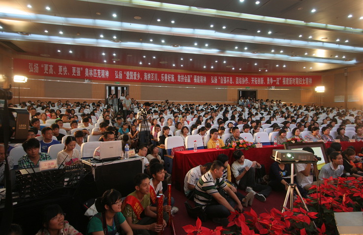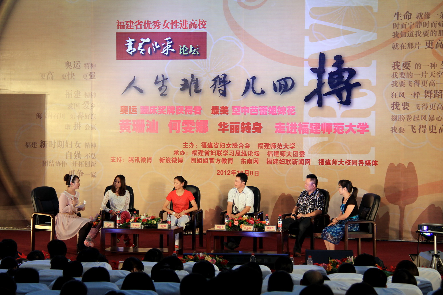10月8日下午,由福建省妇联与我校联合主办的“人生能有几回搏——青春风采论坛”在旗山校区学术大讲堂举行。我省奥运蹦床奖牌获得者、福建省三八红旗手、福建省十大杰出女性黄珊汕、何雯娜与我校600多名师生共同分享成长路上的点滴感动,诉说奋勇拼搏、青春励志的奥运故事。校党委书记罗萤亲切会见了两位奥运名将。福建省妇联副主席马义英、王秋梅、包方,校纪委书记许歌平、副校长李敏出席了论坛。