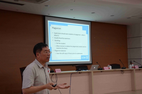 我校校友、闽江学者讲座教授、澳大利亚wollongong大学计算机科学与软件工程系主任穆怡教授为全体与会人员简要介绍了该所大学的研究生教育情况,并以自身指导、培养研究生的实践经验,重点介绍了作为一名研究生导师应具备的素质和培养研究生的具体做法。