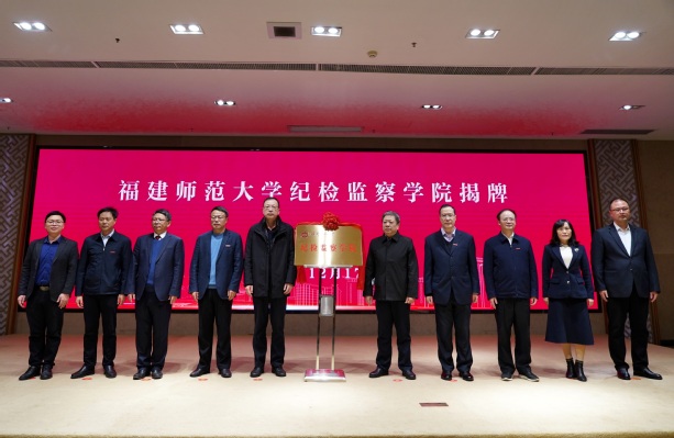 刘健对我校纪检监察学院的揭牌表示热烈祝贺。他指出,长期以来,福建师大全面从严治党、纪检监察、学科建设等工作走在全省高校前列,为纪检监察学院成立和学科建设奠定了良好基础。希望学校认真学习贯彻党的二十大精神,充分发挥自身办学优势,把纪检监察学院建设融入“双一流”建设大局,提高政治站位、把好办学方向,强化内涵建设、推动创新发展,聚力开放协同、提升服务水平,大力培养高素质的纪检监察专门人才,加快产出高水平、有影响的研究成果,全面提升纪检监察学学科水平和服务能力,走出一条具有中国特色、福建风格、师大气派的纪检监察学院发展新路,为福建新文科建设创造更多先行经验,为党和国家纪检监察事业高质量发展贡献更多智慧力量。