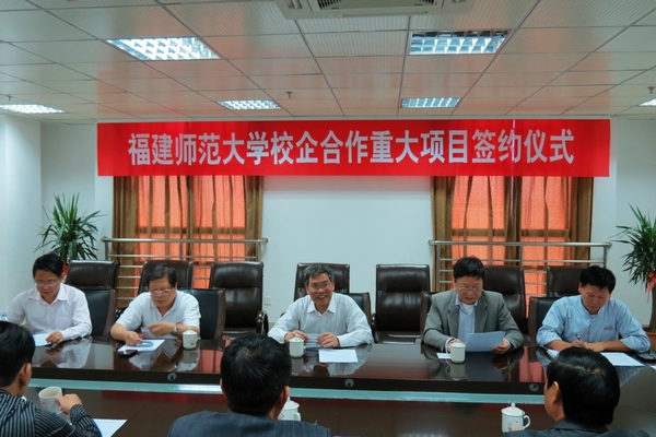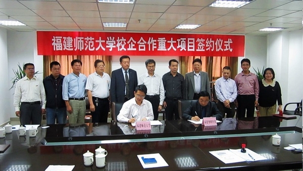陈明总经理、陈俊强副总经理分别介绍了企业的总体情况,并对我校给予企业的技术支持表示感谢。环境科学与工程学院负责人介绍了学院的建设情况,重点介绍了学院开展产学研合作所具备的技术力量,表示对此次校企合作充满信心。随后,科技处、环境科学与工程学院负责人分别代表学校与福建省富民农业科技有限公司、福建奥峰科技有限公司签订了联合成立“福建富民(师大)农林业病虫害防治技术研究中心”和共建“福建奥峰—福建师大生态功能新材料联合开发中心”的合作协议。双方将以合作申报“福建省企业工程技术研究中心”为目标,在相关领域的技术开发、人才培养和教学实践等方面开展深入合作。