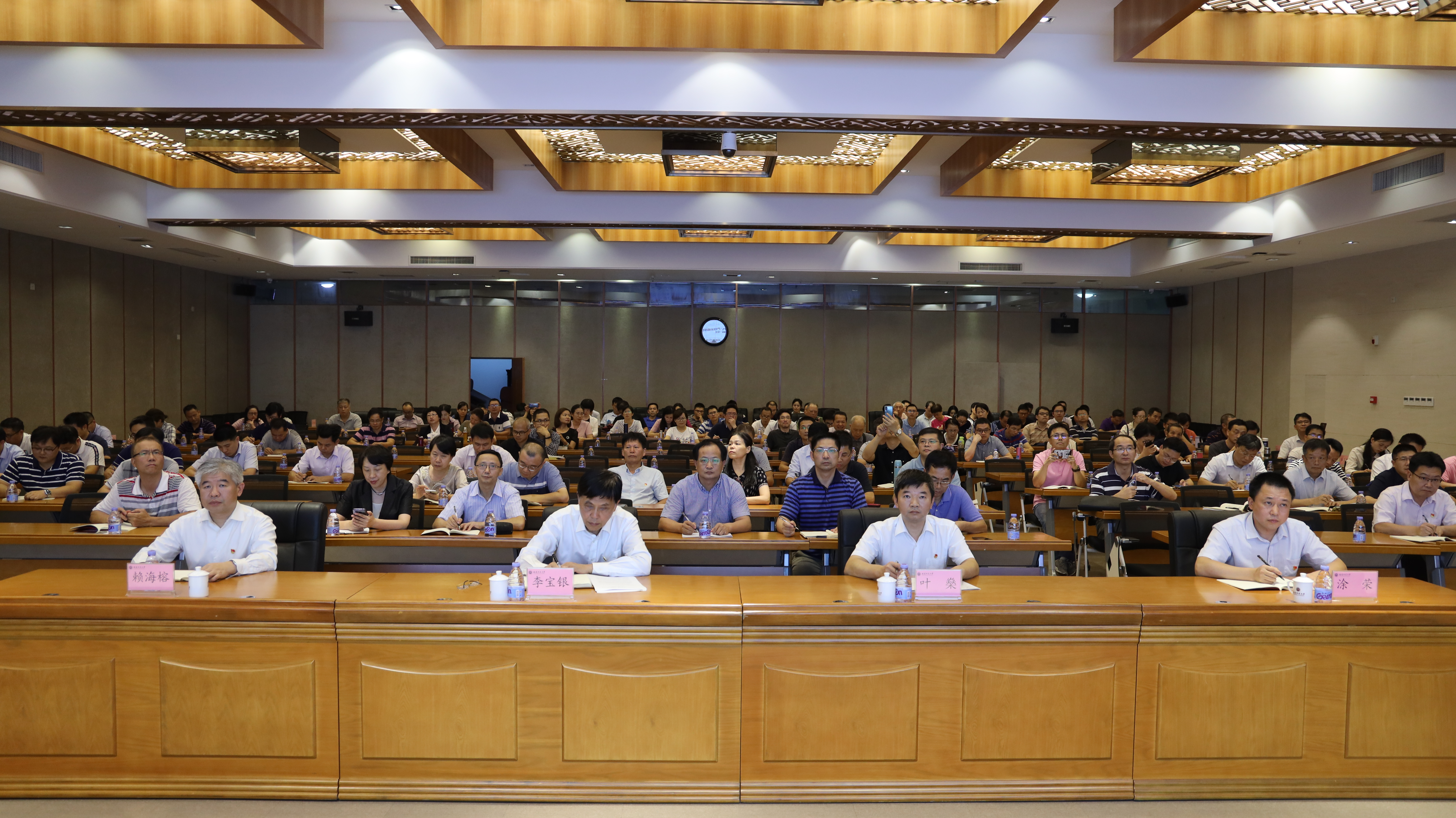 9月30日下午,我校在旗山校区宏达厅、第十会议室开展“不忘初心、牢记使命”主题教育“严明纪律规矩”第六专题集中学习研讨。校领导李宝银、王长平、叶燊、黄清波、赖海榕、涂荣,校纪委委员、二级单位纪委负责人,教师党支部负责人等参加了集中学习研讨。校党委书记李宝银主持学习研讨会。