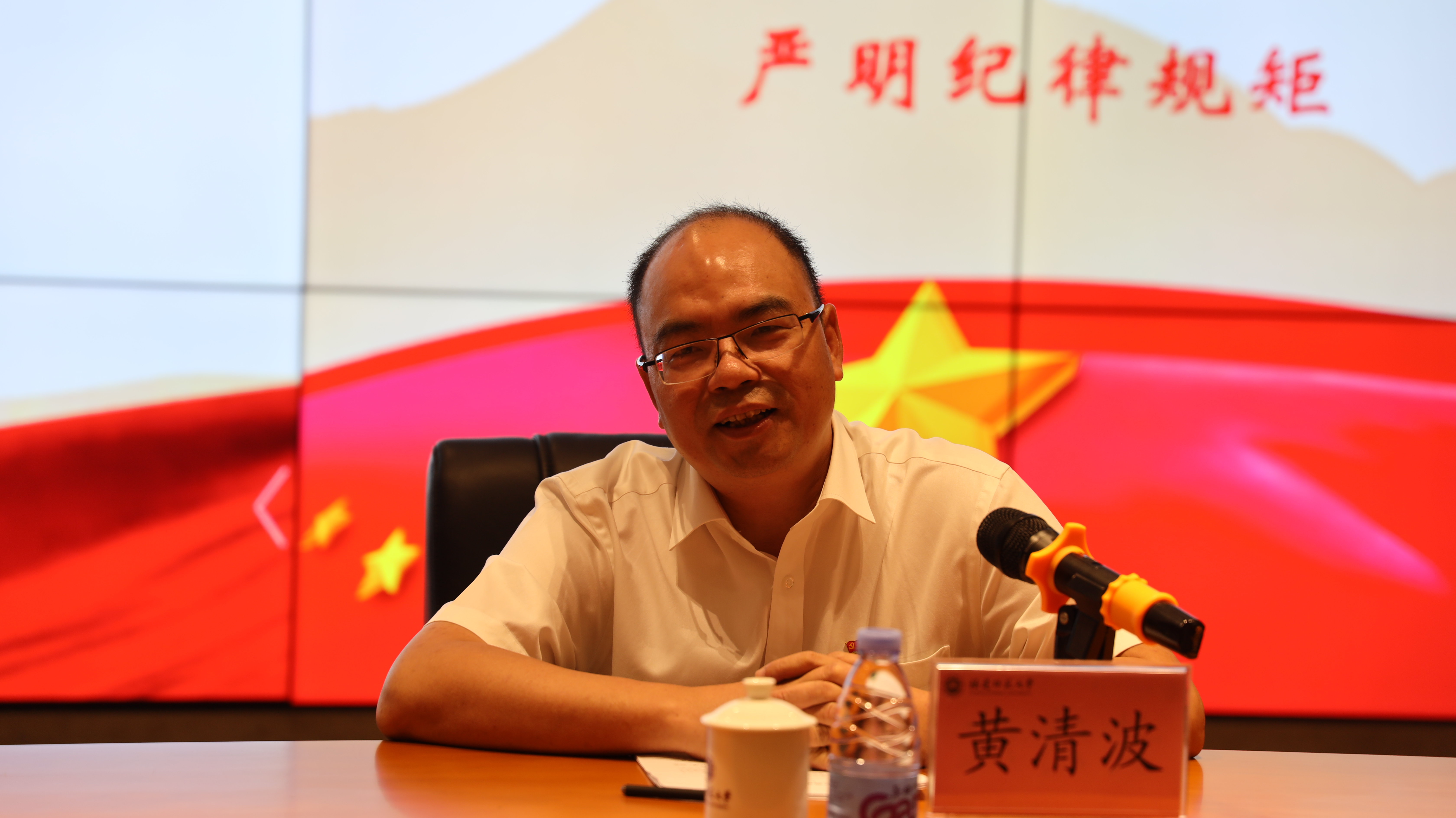 校党委常委、纪委书记黄清波在会上作《党支部书记要做好守纪律讲规矩的表率》的重点发言。他结合纪检监察工作实际,谈了三个方面的心得体会:一是深入学习领会习近平总书记关于纪律规矩的重要论述,切实增强守纪律讲规矩的思想自觉和行动自觉;二是党支部书记要做好守纪律讲规矩的表率,把各级决策部署、规章制度、规定要求贯彻好、落实好,在坚定理想信念、遵守纪律规矩、践行师德师风、主动承担责任、规范组织生活上当好标杆、做好表率;三是通过加强部署推动、督促检查、建章立制和执纪问责,积极为党支部书记履职尽责创造宽松环境。