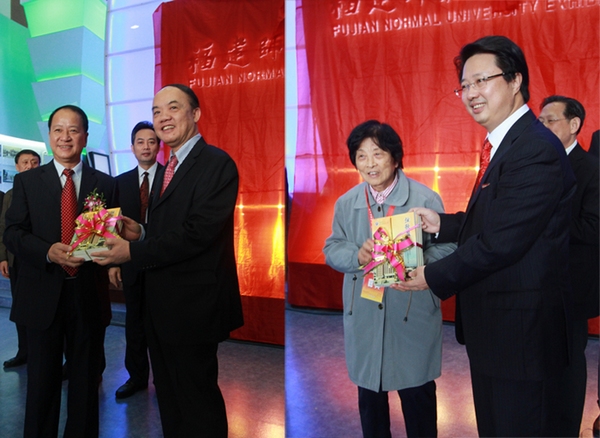 11月17日上午,我校举行展览馆开馆仪式暨105周年校庆文集首发式。国家自然科学基金委副主任、中国科学院姚建年院士,福建省政协原副主席王耀华教授,中国科学院唐崇惕院士,教育部人事司副巡视员赵丹龄,省教育厅厅长鞠维强,省文化厅厅长陈秋平,香港校友会卢象乾理事长,福州大学党委书记陈永正,福建农林大学校长兰思仁,福建中医药大学党委书记黄有霖,泉州师范学院党委书记游小波,福建江夏学院党委书记郭绍生,佳木斯大学党委副书记刘强,省经济贸易委员会副主任郑李亭,省中旅集团党委委员、工会主席洪文比,民盟福建省委副主委刘泓,省物价局行政事业收费管理处处长曾广慧,校领导罗萤、黄汉升、汪文顶出席了仪式。仪式由汪文顶副校长主持。